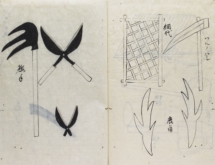 with 4 other Japanese manuscript guides to samurai arms, including two volumes, A manual on matchlock weapons, c.1800, another volume on siege weaponry, c.1780; and a volume on the use of arms issued by the Taisei School, c.1800.
