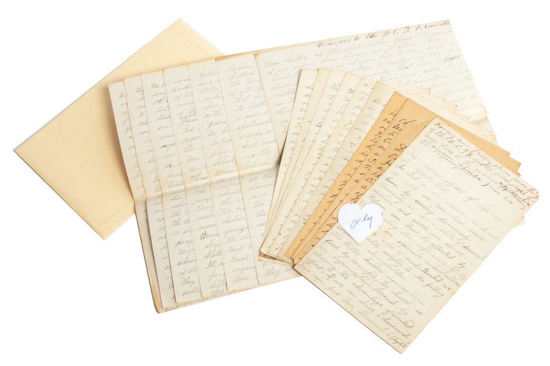 Ohio, 1887. Collection of four manuscript Temperance speeches written in a single hand, and comprised of 25 pages on varying sized sheets. Authored by a leader of an Ohio county branch of the Women's Christian Temperance Union, the speeches address the history of the movement, its progress, its need for women's volunteerism and donations, and its connection to multiple other parts of the women's movement in and beyond the U.S. The speeches provide information on how grassroots organization helped the WCTU to become one of the most powerful women's groups in the country, and how the organization wielded its influence over elections, public health, and education before women could even vote.