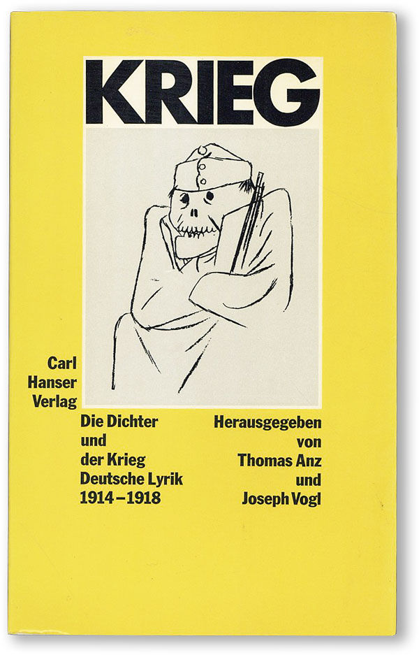 [München]: Carl Hanser Verlag, [1982]. First Edition. 12mo (18.5cm.); publisher's yellow pictorial card wrappers, French flaps; 271pp. A hint of dust-soil and shelf wear, else Near Fine. Anthology of German World War I poetry.
