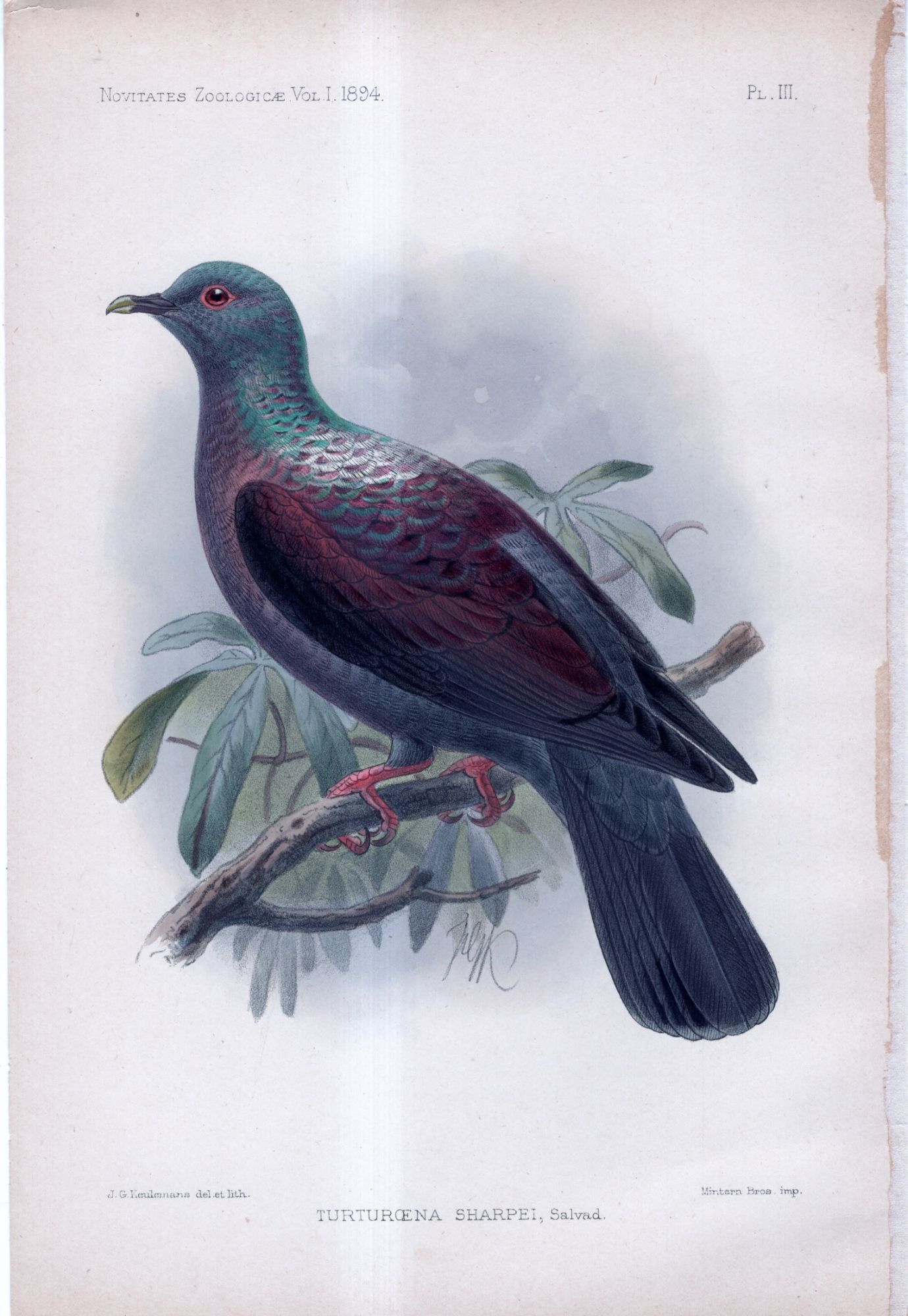 Novitates Zoologicae. A Journal of Zoology in Connection with the Tring Museum. Volume I. PLATE III ONLY: Turturoena Sharpei, Salvad (Pigeon)