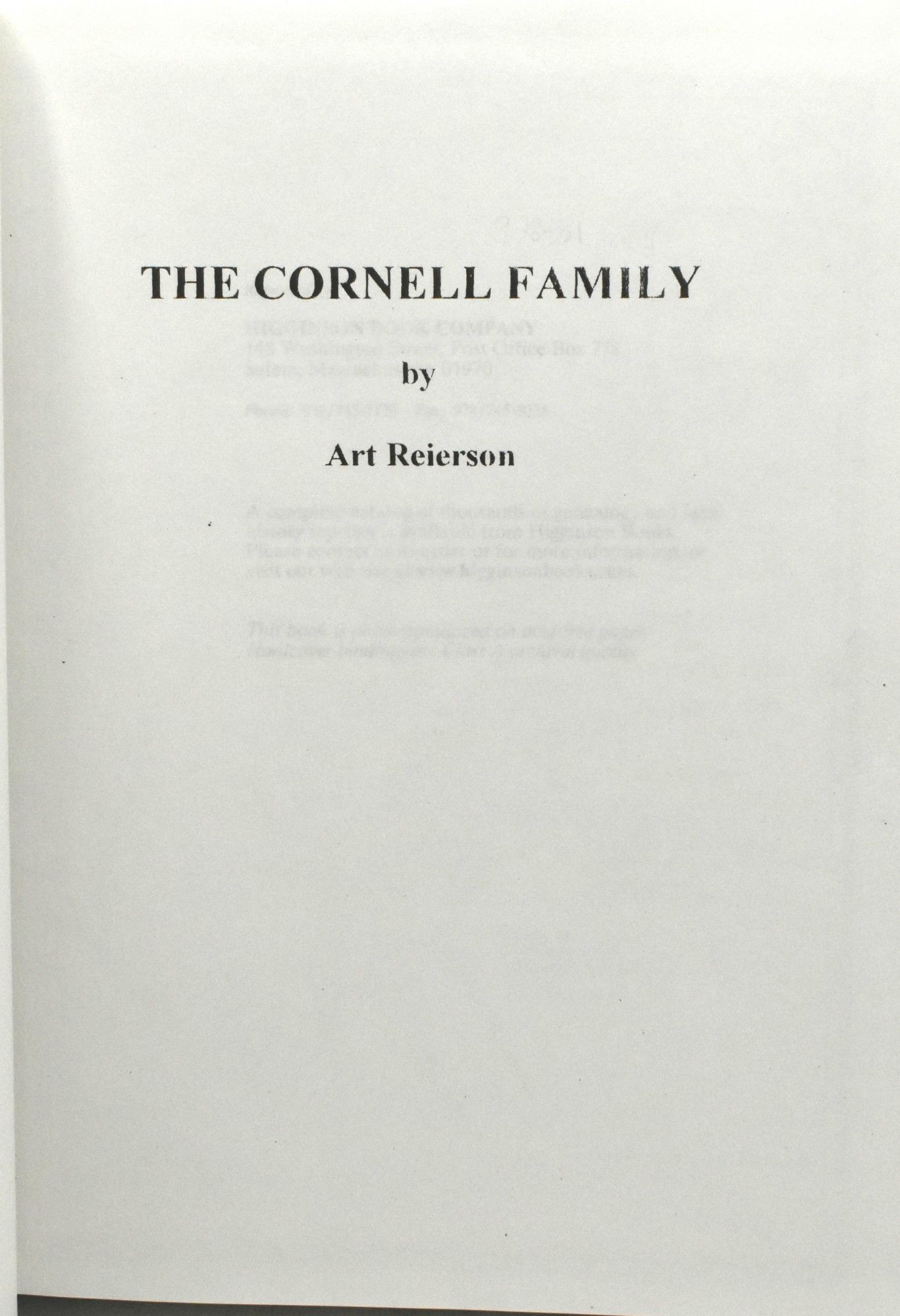 THE CORNELL FAMILY Hard Cover Salem, Massachusetts: Higginson Book Company, n.d. By Art Reierson Salem, Massachusetts: Higginson Book Company, n.d.. Reprint Edition. Hard Cover. Near Fine binding. With no marks. Library-style blue cloth binding. Near Fine binding.