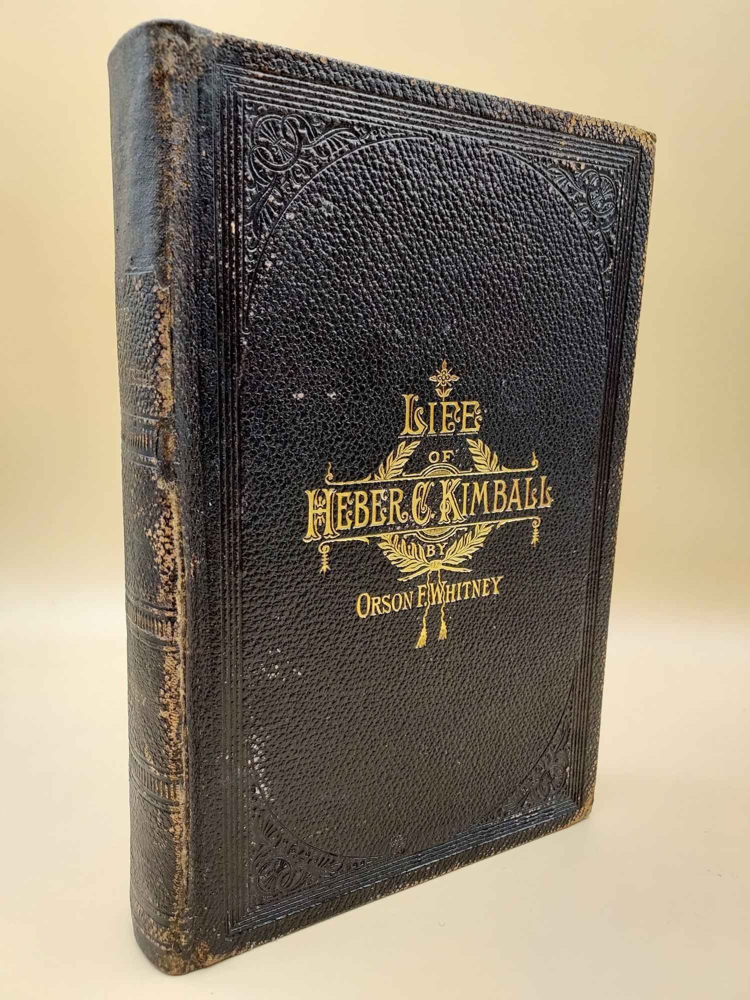 Salt Lake City, UT: Published by the Kimball Family. Printed at the Juvenile Instructor Office, 1888. First Edition. Leather bound. Very good. 520pp. Octavo [24 cm] Embossed leather boards. Title gilt stamped on front board and backstrip. All edges gilt. Rebacked, with a portion of the original spine overlaid. Leather professionally preserved with archival cellugel (making leather less dry). There are a couple of contemporary gift inscriptions on the preliminary pages. Frontispieces Heber C. Kimball and his wife Vilate are present. The Joseph and Hyrum Smith portraits are also present at the center. Biography of the Mormon leader by his grandson. Flake/Draper 9772.