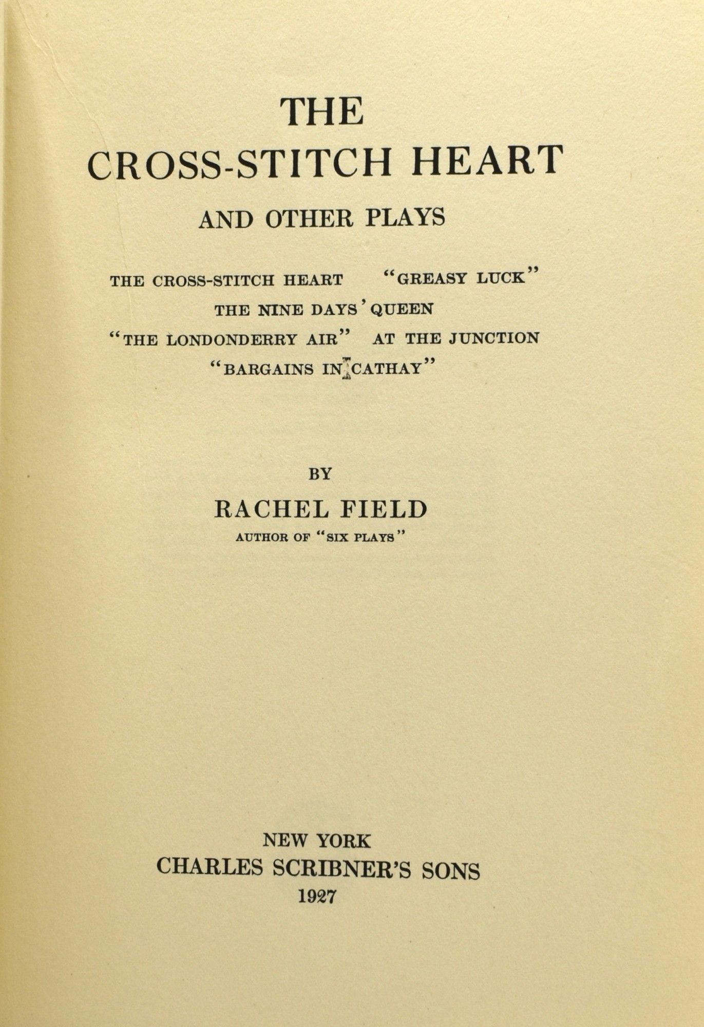 [DRAMA] THE CROSS-STITCH HEART AND OTHER PLAYS. | THE CROSS-STITCH HEART. GREASY LUCK. THE NINE DAYS' QUEEN. THE LONDONDERRY AIR. AT THE JUNCTION. BARGAINS IN CATHAY