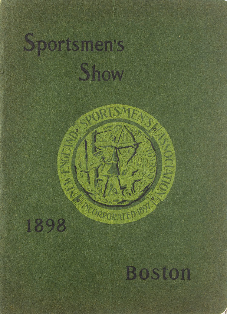 Boston: [The Stillings Press], 1898. Illustrated. [32] pp. 1 vols. 4to. Green wrappers. Old fold at center, else very good. Illustrated. [32] pp. 1 vols. 4to. A rare illustrated guide to a large sporting show that featured exhibitions of live wild game from Canada and the American West; an Indian camp with bird bark teepees; an aviary of American game birds and exotic pheasants; displays of sporting camps from Florida, Maine, and New Brunswick; a fish hatchery; a canoe pond; and swimming competitions and shooting matches.