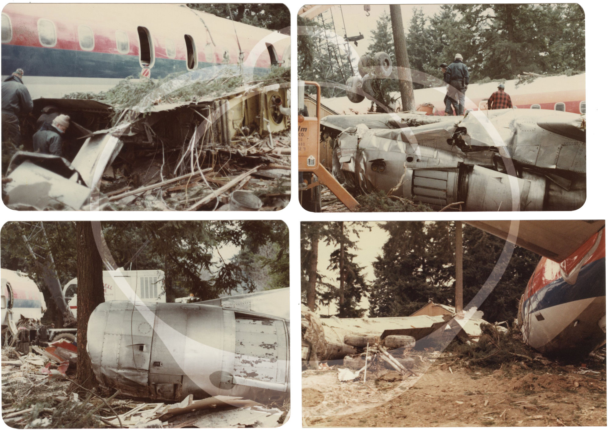 Portland, OR: N.p., 1978. Archive of 63 vernacular color photographs of the scene of the crash of commercial United Airlines Flight 173 that occurred on December 28, 1978, in suburban Portland, Oregon.