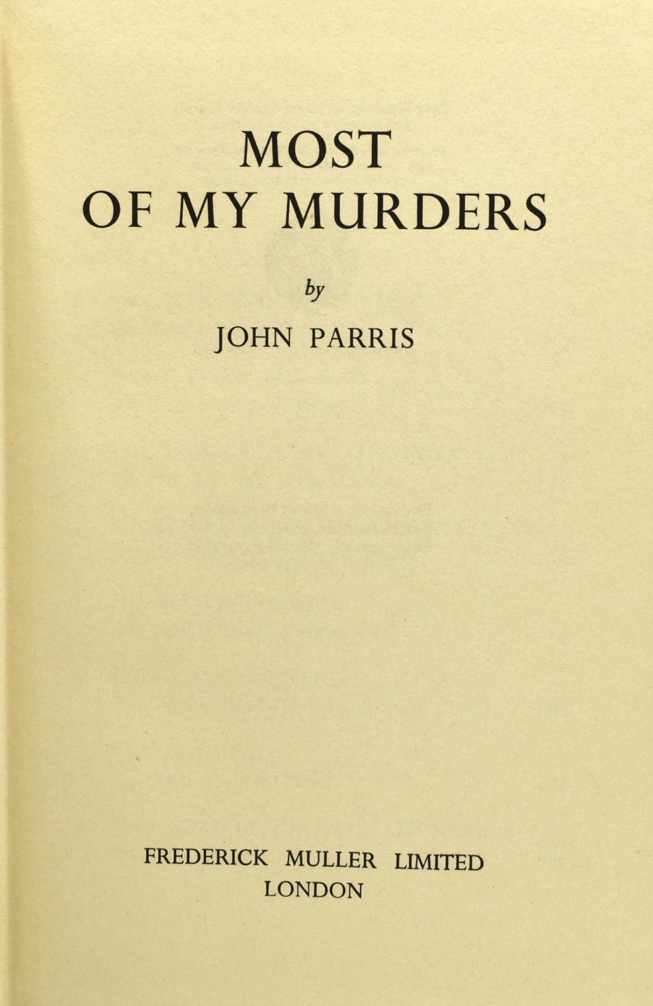 London: Frederick Muller Limited, 1960. First Edition. Hard Cover. Very Good binding/Very Good dust jacket. First Edition of John Parris's firsthand accounts of eleven famous murder trials, with photographic plates. Toning to the endpapers, and minor wear to the dustjacket. Blue cloth with Very Good dustjacket. Top edge gilt. Very Good binding / Very Good dust jacket.