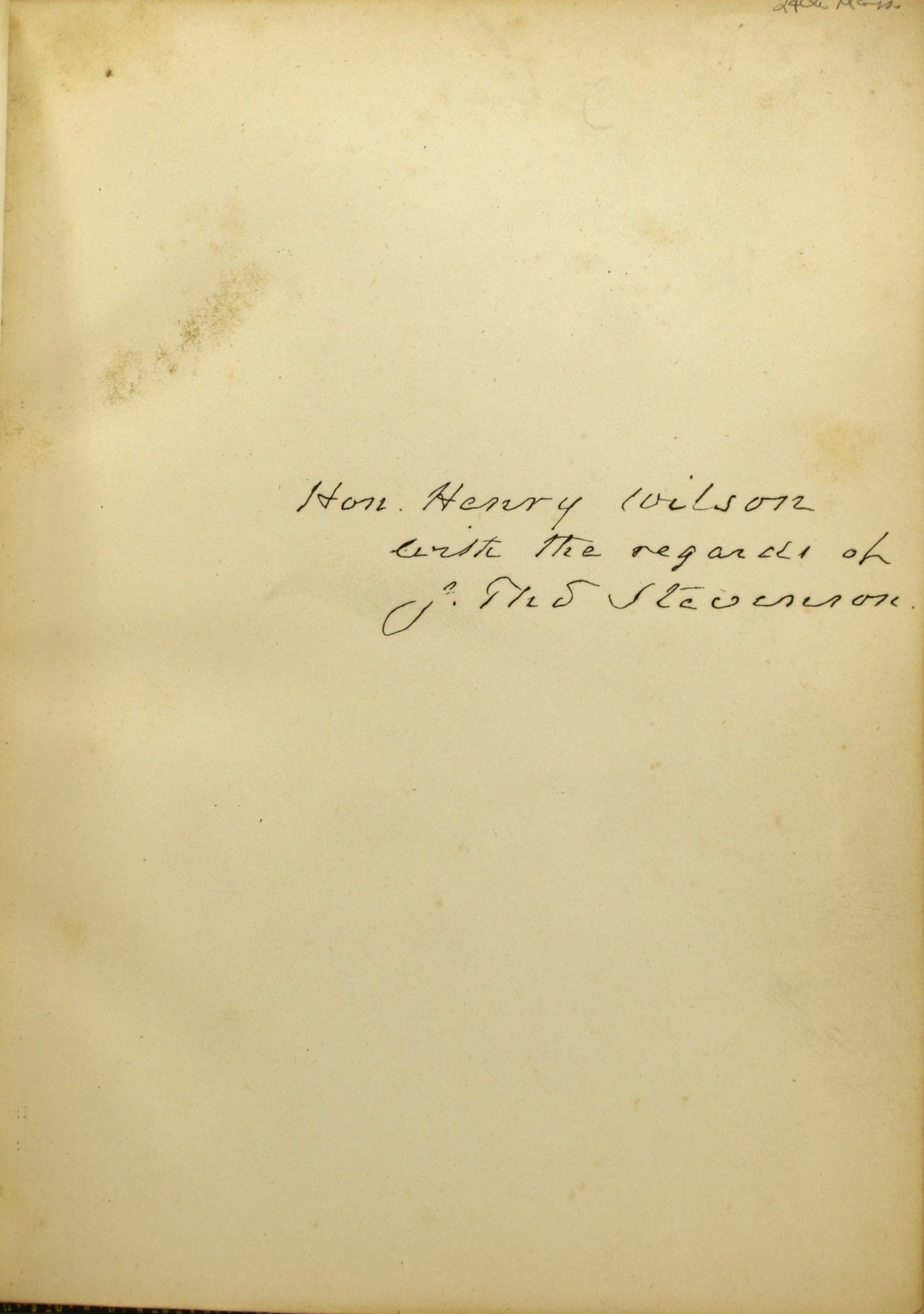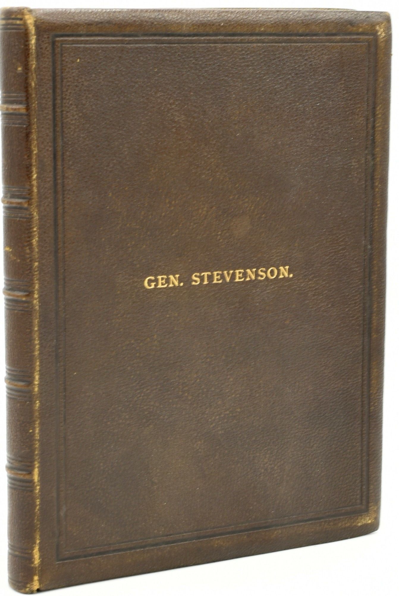 Cambridge: Printed by Welch, Bigelow, & Co, 1864. Full Leather. Very Good binding. Signed. A memorial of the Civil War General Stevenson, written by his grieving father. Signed by the author with a personal inscription on the front flyleaf, with the recipient's nameplate on the front pastedown. From the library of Bud Robertson, with his bookplate on the front endpaper. Portrait frontispiece. Brown morocco with gilt lettering. Marbled endpapers, dentelles, and all edges gilt. 129 pp. Very Good binding.