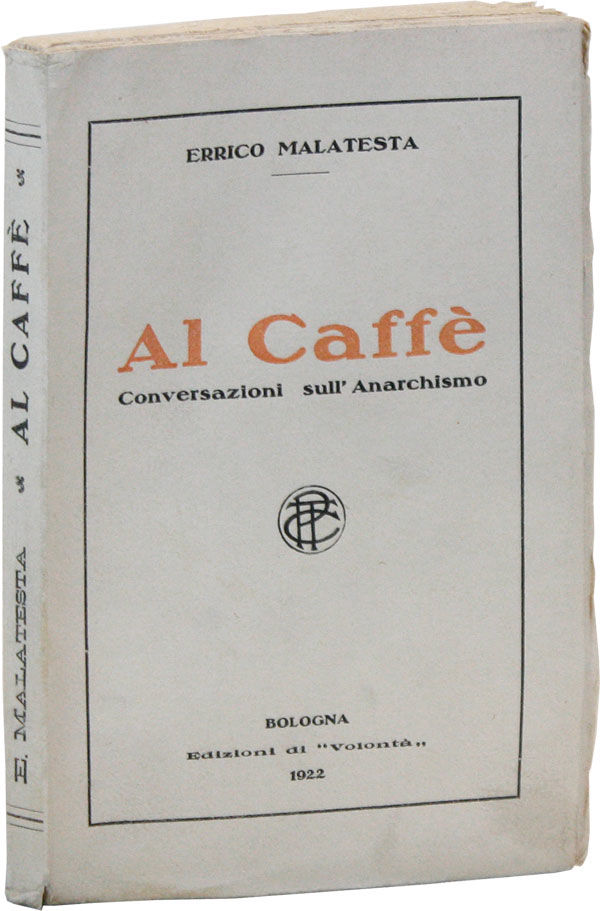 Bologna: Edizioni di "Volontà, 1922. First Edition. Octavo (19.5cm.); publisher's cream card wrappers printed in orange and black; 118pp. Spine rather significantly cocked, some wear to extremities; still, quite a Very Good, fresh copy of a scarce edition. A series of fictional conversations and debates between a student, a "borghese," an anarchist-socialist, a judge, and a merchant. Divided into chapters, the "characters" discuss a socialist constitution, economics, communism, government, laws and communist anarchism. The first ten conversations were written in 1897 before Malatesta fled Italy, and were based on his experiences as the frequenter of "a café that was not usually the haunt of subversives such as himself...Anarchism would almost certainly have been one of the topics of conversation since the anarchists of the city [Ancona] constantly bombarded their fellow townspeople with a barrage of propaganda" (Robin Healey, "Italian Literature Before 1900 in English Translation" 0584, citing the 2005 translation). Only upon his return to Ancona, in 1913, did Malatesta revisit the conversations, publishing the first ten in his new journal "Volontà" though they were not fully completed until after the end of World War I, in 1920, shortly before the author's arrest. Though his home was searched and arms and explosives discovered, the manuscript was either missed or ignored and published in its entirey for the first time in this edition with a short afterword by Luigi Fabbri, co-editor with Malatesta of the journal "L'Agitazione." (See Paul Nursey-Bray's introduction to the 2005 translation). Exceedingly rare: no copies in the trade as of October, 2019; Smith College and the IISH only in OCLC.