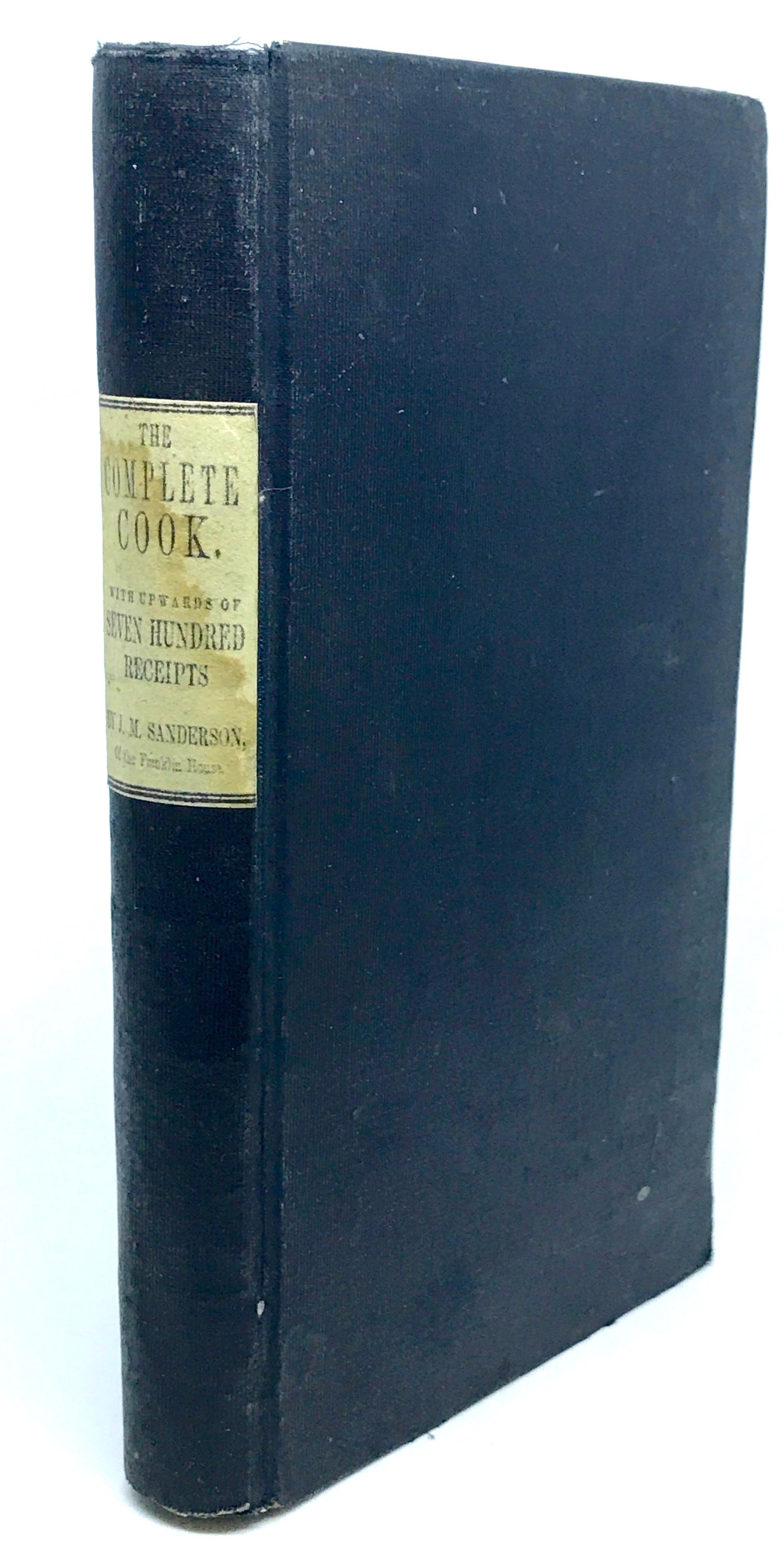 Philadelphia: Lea and Blanchard, 1843 and 1844. First Edition. Hardcover. Black boards, paper spine label. Very good. 196 & 154 pages. 19.5 x 12 cm. The Complete Cook highlights the art of carving, accompanied by illustrations. The Complete Confectioner contains one page of illustrations, featuring modeling tools - last ten pages filled with period advertisements. Pages tanned, edges rubbed, otherwise text clean, no markings. [LOWENSTEIN 302 & 320].
