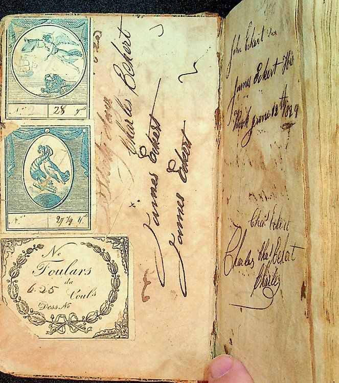 Easton, [PA]: G. W. Deshler, 1818. First Edition. Boards. Good. First Edition. iv, [1], 6-68 pages. Parentheses substituted for square brackets in title transcription. Leather spine over worn marbled boards. Many inked or penciled scribbles and names on endpapers, including "James Eckert April 15th 1829", "Anna Eckert", "Charles Eckert his book" "John Eckert his book", "James Eckert his book June 12th 1829", "Chas Eckert" etc. Three labels affixed to front pastedown (apparently textile labels, from bolts of cloth), two printed in blue, one in black. A sound copy. Boards. The first edition of this work (another edition in the following year removes the Hawles attribution on the title page). Hawles is Sir John Hawles (1645-1716) who wrote a number of legal works.