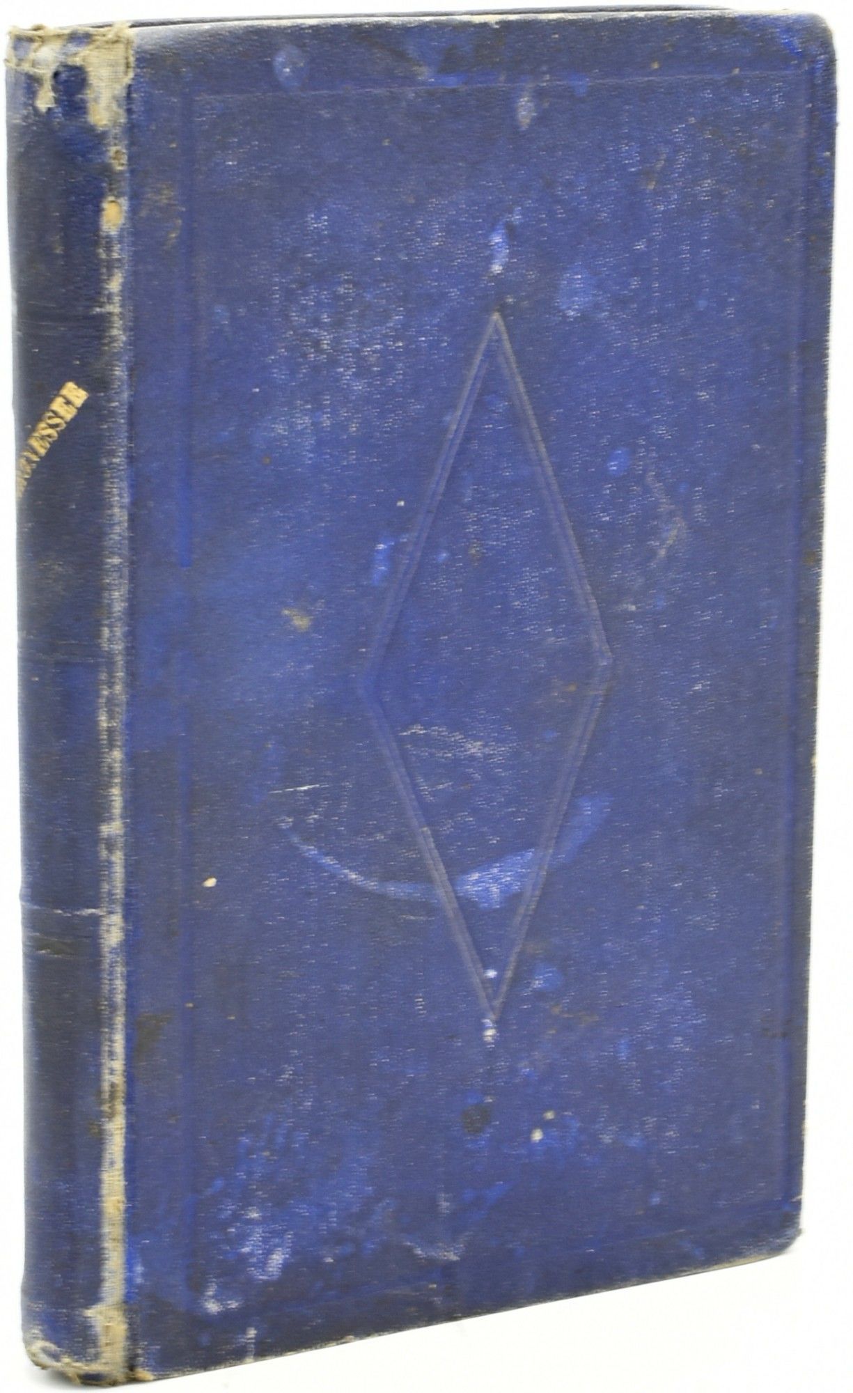 Norfolk: Printed at the Journal Job Office, 1868. First Edition. Hard Cover. Fair binding. First Edition of a collection of Thornton's works, being Chorronessee, Esther, Songs of the Aeronauts, and additional miscellaneous poems. From the Preface, "Southern by birth - Southern in sentiment, education and interest - my book is Southern, too - [...] to the free-born citizens of the South, then, I commit the work." Contemporary owner's name on the title page; lacking front endpaper, perhaps also front and rear flyleaves. Scattered foxing; binding somewhat cocked, with a few protruding signatures; moderate shelfwear to the binding, with surface loss to the joints and extremities of the spine. Blue cloth with gilt lettering. (Wright 2494). Fair binding.