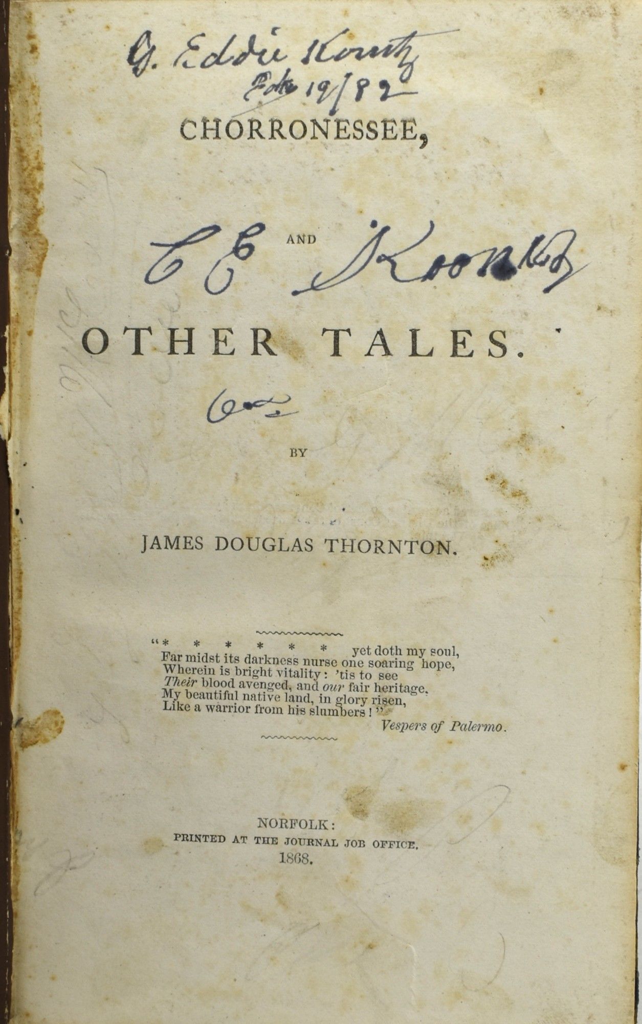 [SOUTHERN AMERICANA] CHORRONESSEE, AND OTHER TALES