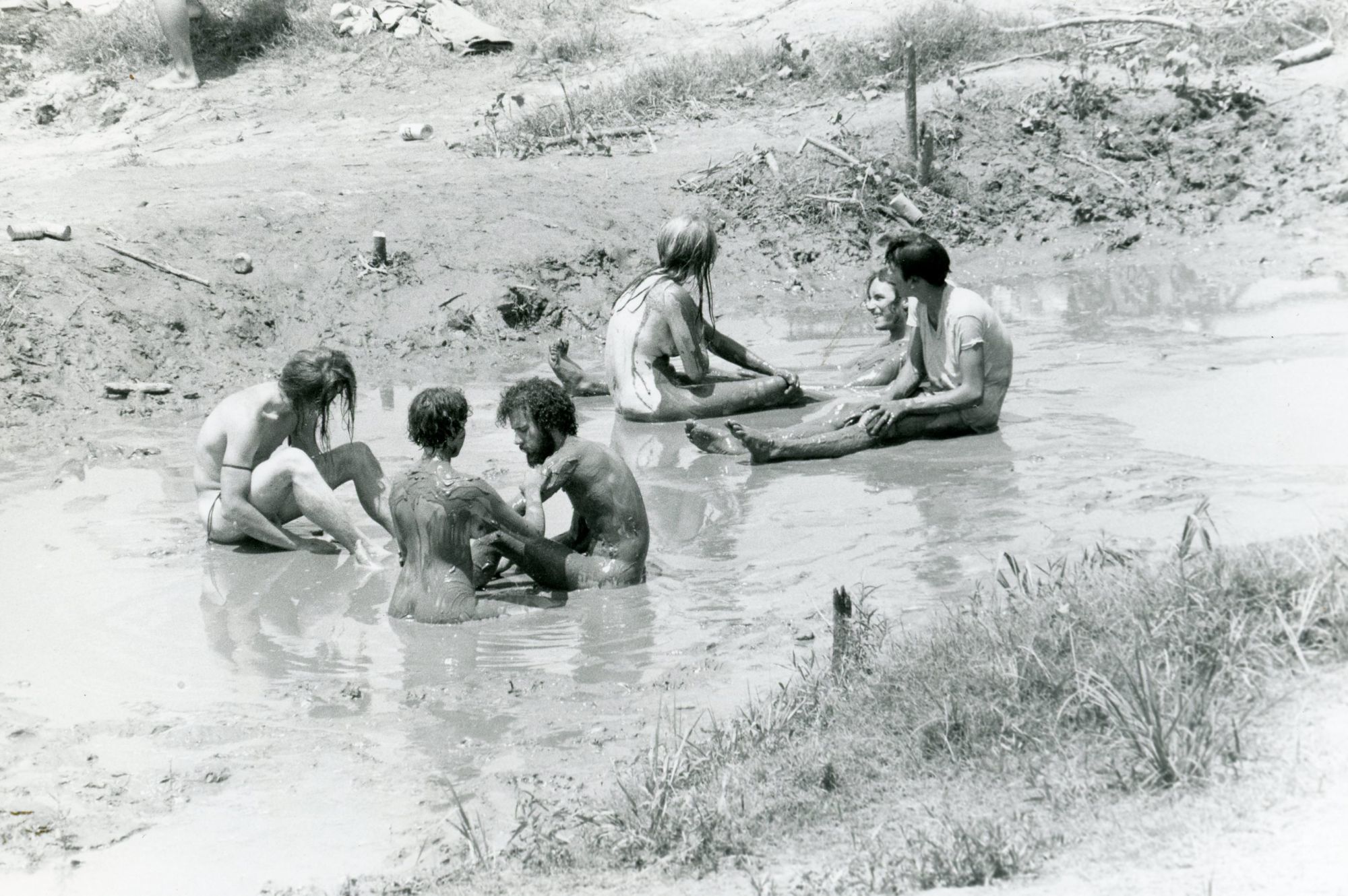 V.p., 1970. Thirty-three 11 x 14 images, thirteen 8 x 10 images. Excellent. These photographs, likely taken by a participant in the various events but probably printed in the 1970s, encapsulate many of the iconic themes of the New Left. Most of the photographs show protesters at unidentified events, though the clothing and settings are without a doubt the late 1960s, and one photograph, a close-up of Abbie Hoffman, as well as several pictures of demonstrators being arrested suggest that the pictures may have been taken at the 1968 Democratic Convention. The smaller series of photographs show mud-caked festival-attendants in various states: having sex, smoking marijuana, walking pleasantly alongside each other, and painting each other with mud. The pictures vary in technical quality but encapsulate the moment quite vividly, with an intimacy lacking from most press photographs of the period, and despite the student photography feel they show a pivotal moment in American social history with a sympathetic eye. A few photographs of an older woman at a protest and another of a military veteran appear to intend to portray the movement as having a broader purpose. Prints are well preserved and generally in excellent condition, with a few prints which appear to be earlier showing some normal signs of wear.