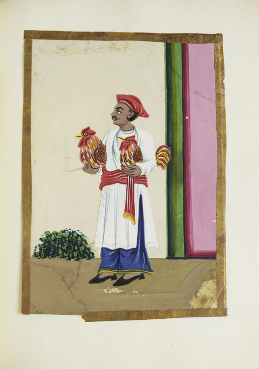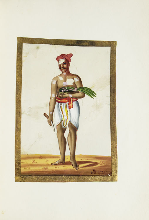 [India], 1830. 21 original gouache paintings on mica, each within gilt border. 19th century card covers. Occasional flaking or chipping mostly to borders, spine chipped. 21 original gouache paintings on mica, each within gilt border. Provenance: Robert Hoe (book label)