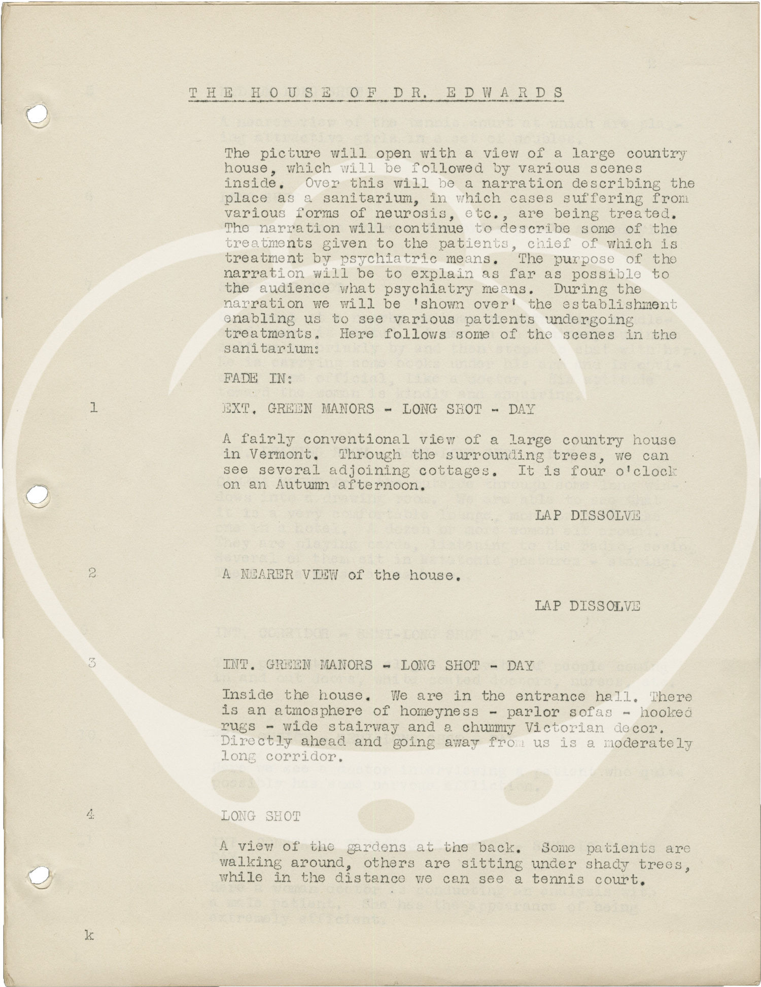 Los Angeles: Vanguard Films, 1944. Temporary Shooting script for the 1945 film, here under the working title, "The House of Dr. Edwardes."