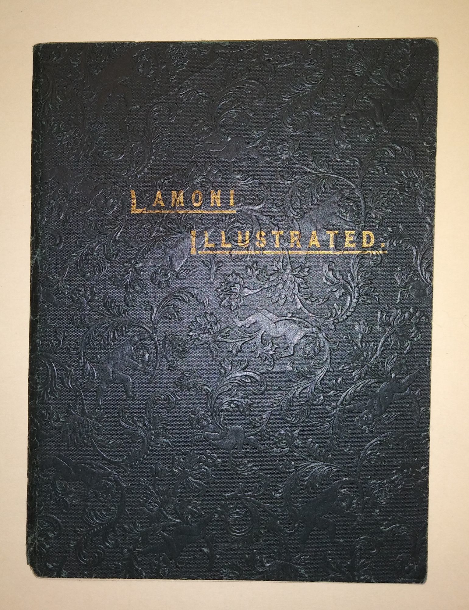 Lamoni, IA: Herald Publishing House, 1892. 29pp. Sextodecimo [16.5 cm] in deep green cloth-covered wraps with a fully embossed decorative design of cherubs and floral scrolls, title in gilt on front wrap. Spine lightly chipped at tips, extremities rubbed, else very light wear; occasional light foxing to interior; slight musty scent. A brief history and promotion of the town that was at the time the headquarters of the RLDS Church (now Community of Christ). Two engravings and six B&W photographs. Flake 4013a. With three pieces of supplemental material described below. From the conclusion-