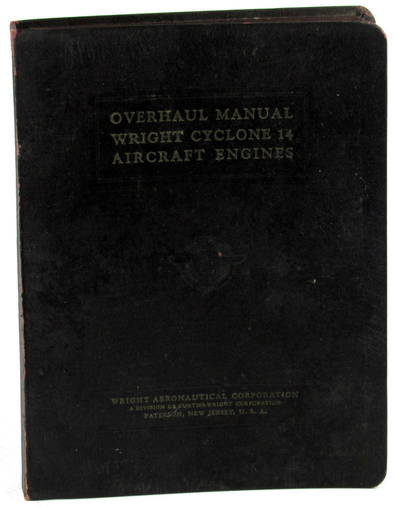 Paterson: Wright Aeronautical Corporation, 1940. Paperback. Very good. Paperback. xviii, Approximately 300 pp+ folding diagrams and index. Lettering on front dulled, scattered foxing throughout, else very good in manufacturer's brad bound flexible boards.