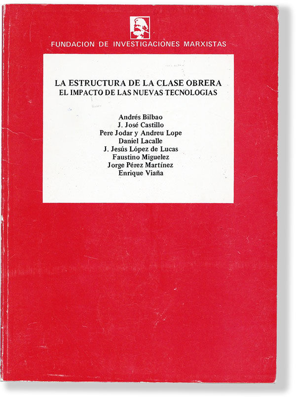 Madrid: Fundacion de Investigaciones Marxistas, 1986. 12mo. Printed card wrappers; 109pp. Clean, tight, unmarked - Very Good. Essays by Andrés Bilbao, J. José Castillo, Daniel Lacalle, others.
