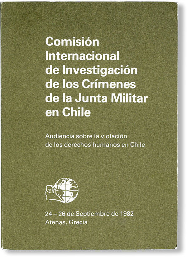 [Helsinki: Comisión Internacional de Investigación de los Crímenes de la Junta Militar en Chile, 1982. First Edition. Slim octavo; publisher's olive green card wrappers lettered in white; 74pp. Light shelf wear, else Near Fine. Does not appear to be separately catalogued in OCLC as of March, 2020.