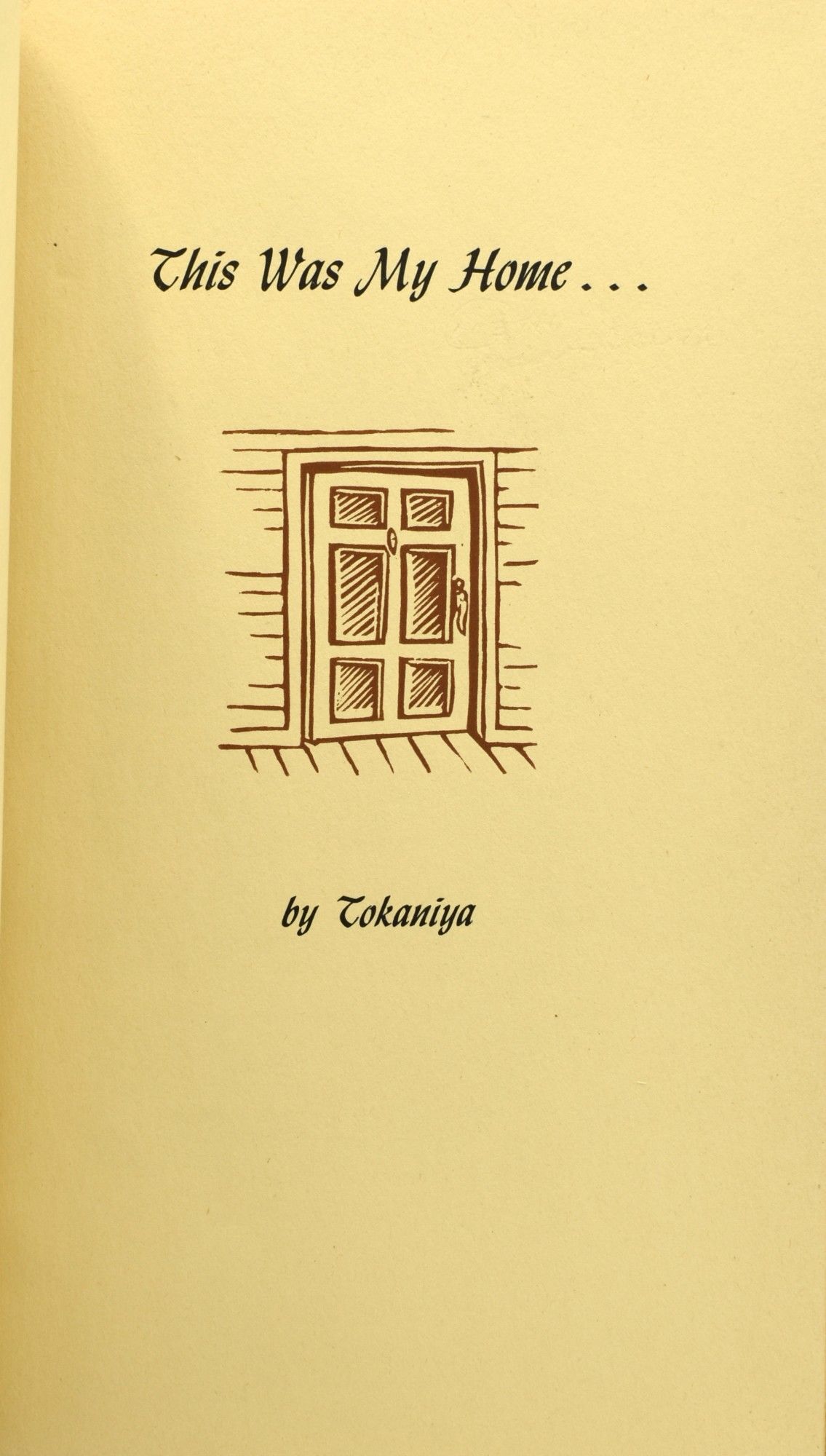 [Iowa?], 1950. Hard Cover. Very Good binding. Uncommon title by American naturalist, poet and Native American cultural enthusiast Tokaniya, or Howard Clark Brown. This is the hardcover edition of This was my Home... bound in green cloth with titling in gilt to the front board. There is a small stain on the board, and a previous owner name on the pastedown. The wrappers are bound in. Very Good binding.