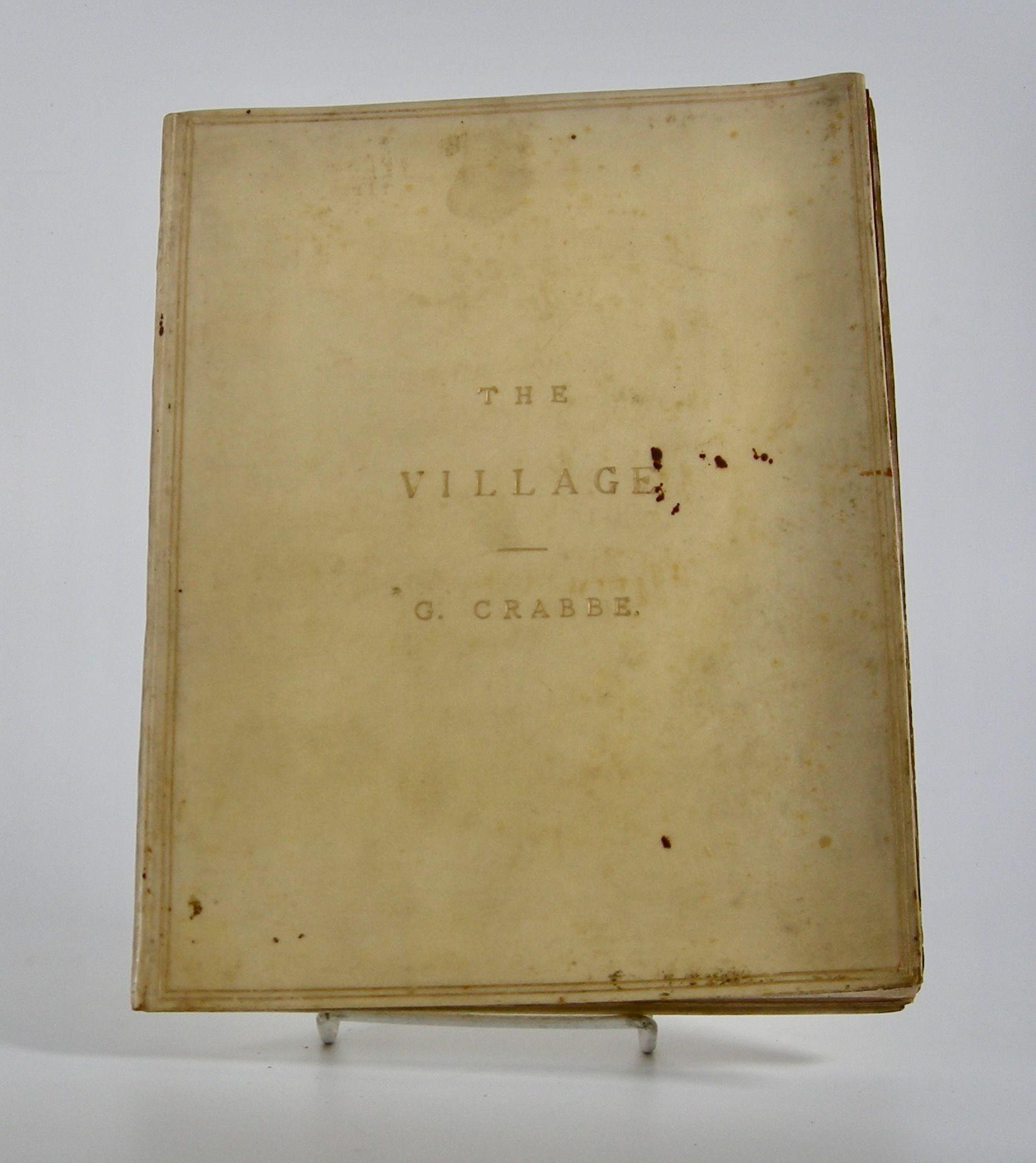 London: J. Dodsley, 1788. First Edition. Ownership signature on half-title; scattered spots and marks; covers slightly soiled; a nice copy.. 4to, [4] 38pp; bound in full contemporary limp vellum, gilt title on front board and double rules front and rear; white moire endpapers. The most important early work of Crabbe, which was significantly revised by Samuel Johnson. Crabbe became a significant bridge between Johnson's age and the young Romantics that followed. This is a very appealing copy, with generous margins.