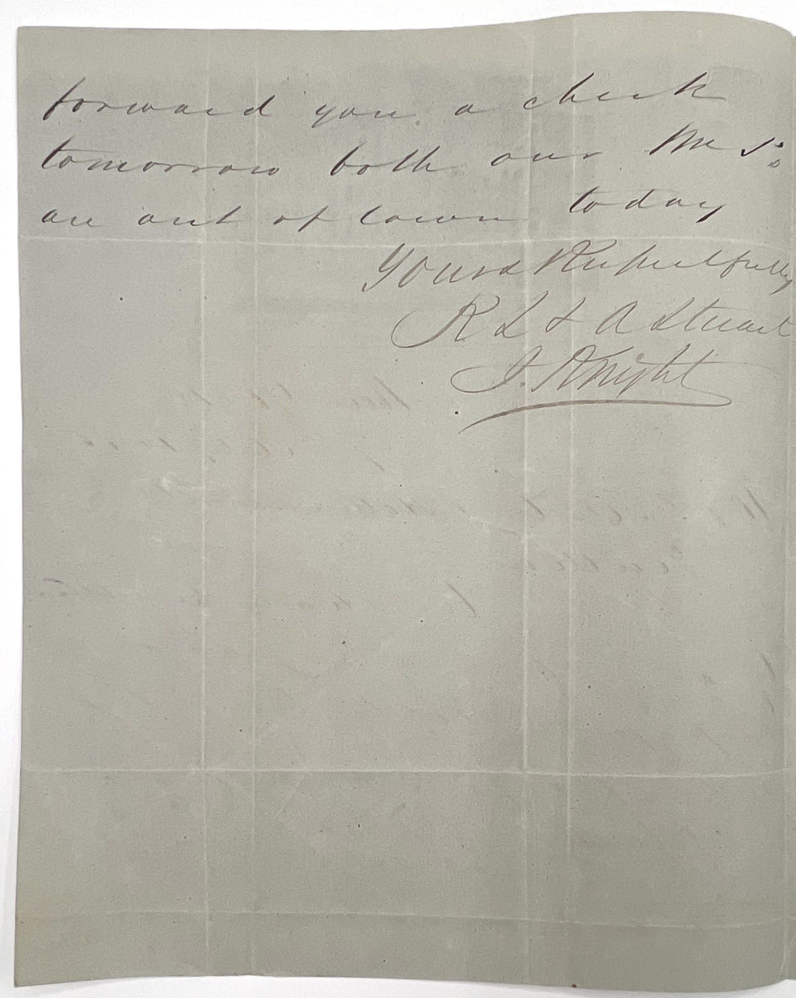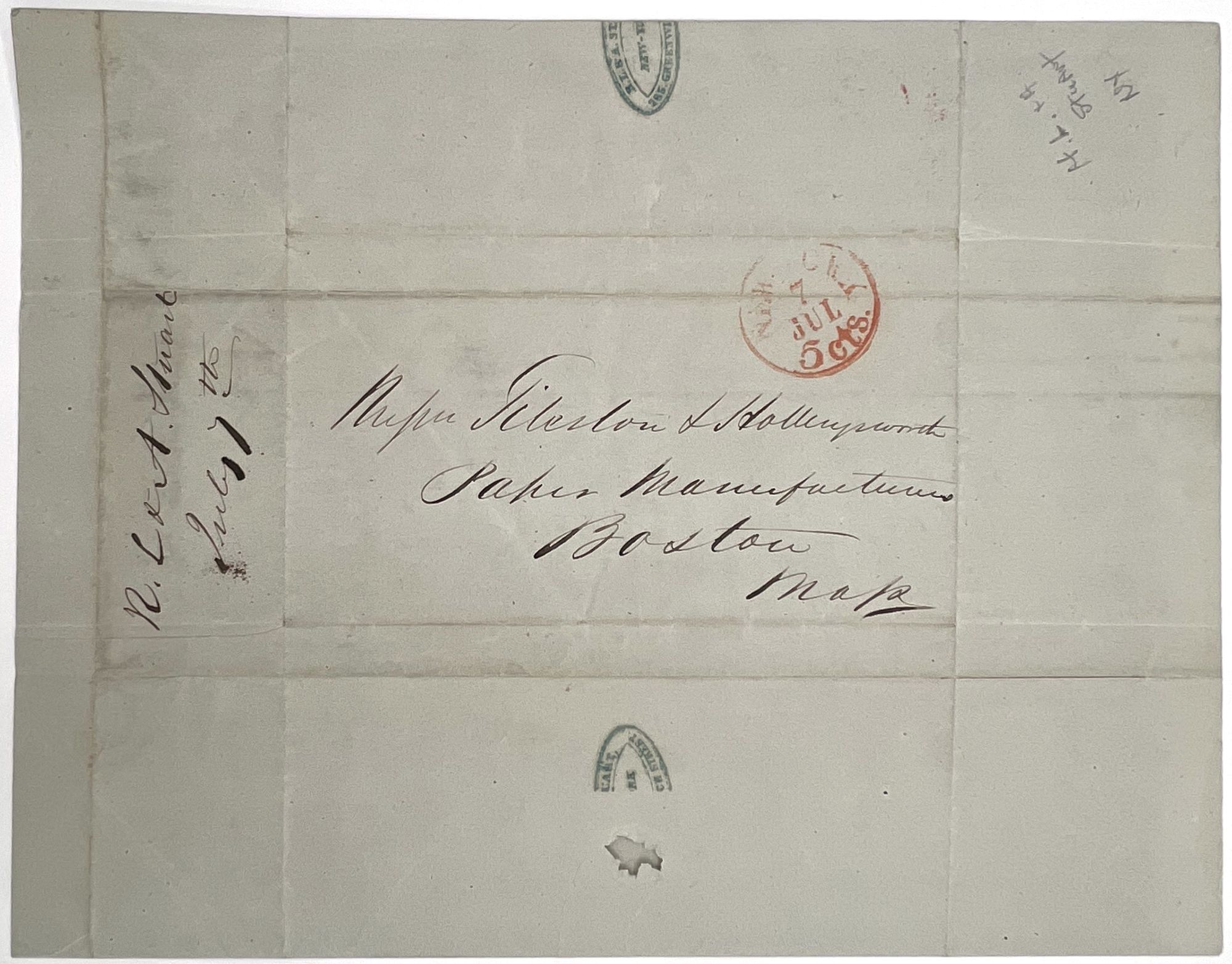 New York, New York: R.L. & A. Stuart's Steam Candy and Sugar Refinery, 1848. Very good. Letter folds.. A handwritten letter on illustrated letterhead from J. Knight (?), an employee of R.L. & A. Stuart's Steam Candy and Sugar Refinery, ordering fifty bundles of paper from the Boston paper manufacturers Tileston and Hollingsworth. Dated 7 July, 1848. Illustration at head depicts the candy factory, which was located in New York. Bifolium measuring approx. 10.5" by 8.25