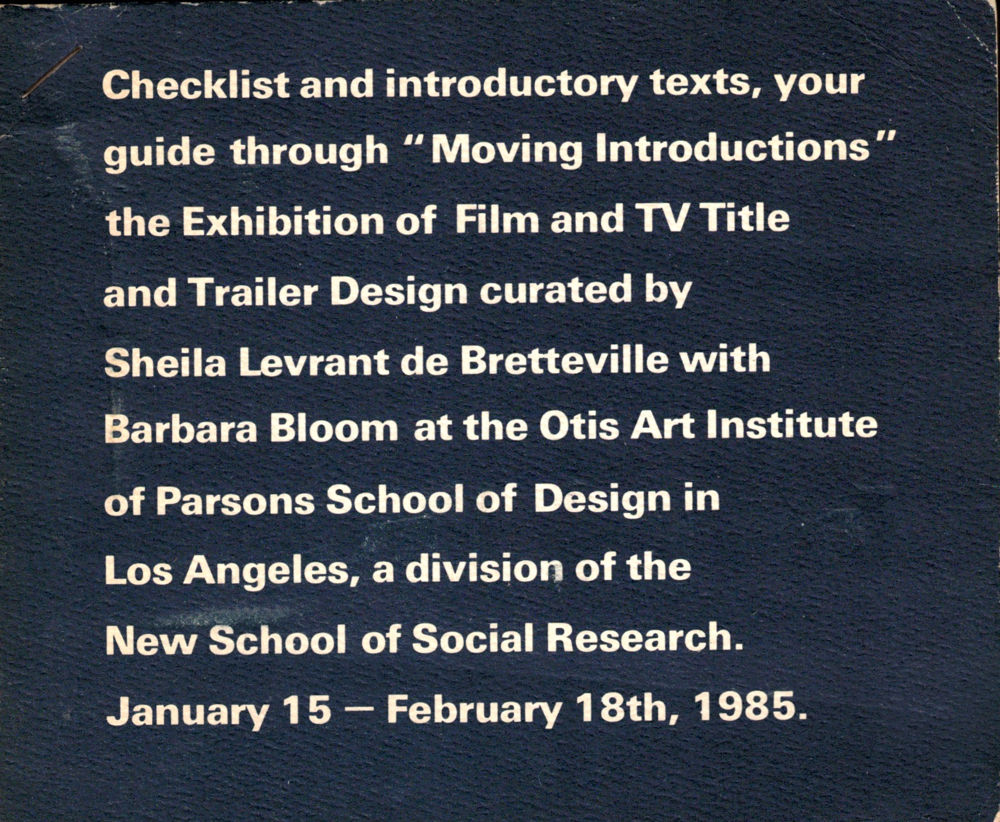 Checklist and Introductory Texts, Your Guide Through "Moving Introductions" the Exhibition of Film and TV Title and Trailer Design