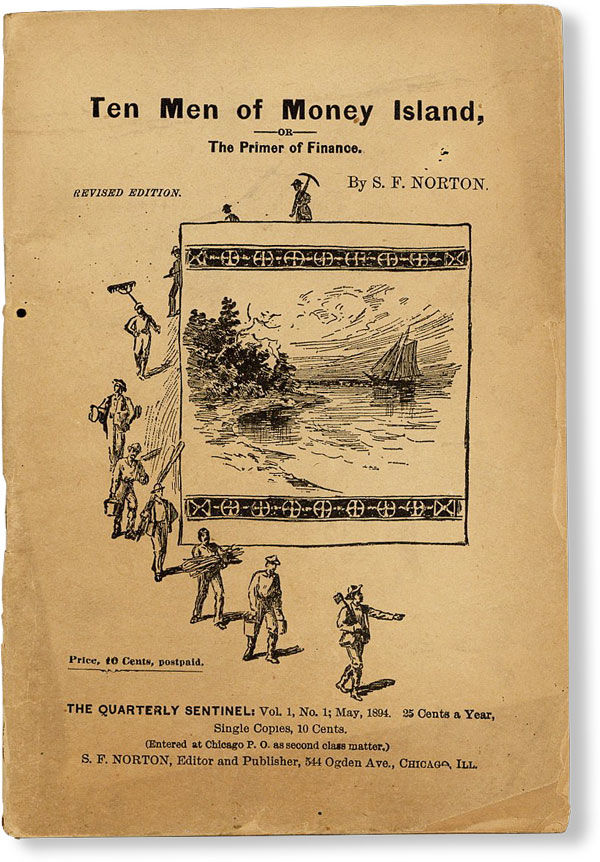 Chicago: By the Author, 1894. Revised Edition. 12mo (20cm); original pictorial wrappers, stapled; 93,[1]pp; illus. Text is tanned and a bit brittle at the edges, neat splits to front wrapper above and below the staples, with several tiny tears, and a few slivers missing from wrapper extremities, particularly at preliminary and terminal leaves; Good, complete copy. A tax reform utopia, originally published serially in the Chicago Sentinel between 1879 and 1885. An author's note at base of title page states: "...it was then published in cheap pamphlet form - of which over a hundred thousand copies have since been sold. Its popularity as an educator seems to warrant the present better and more expensive edition." Issued as Vol. I, no. 1 in Norton's Quarterly Sentinel, apparently a successor to his weekly newspaper of the same name. No further numbers of the Quarterly appear to have been issued.