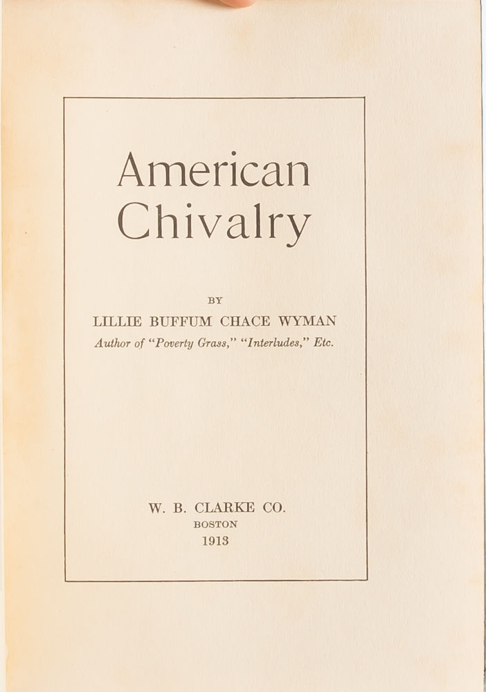 American Chivalry is Lillie Buffum Chace Wyman's monument to the two largest social movements of nineteenth-century America and some of their leading figures: the abolition of slavery and women's suffrage. The volume is a collection of six biographical sketches of Wendell Phillips, Lillie's mother Elizabeth Buffum Chace, her aunt Rebecca Buffum Chace, Parker Pillsbury, Sojourner Truth, and her late husband John Crawford Wyman. These different figures were all connected to Lillie Wyman, either as family members or as friends. Wyman's sketch of Wendell Phillips is particularly notable for its impressionistic style. Unlike many biographies which relied on birth-to-death chronology to give coherence to a life, the biography of Phillips is made of vignettes that Wyman uses to stitch together a rich and intimate portrait of Phillips' renowned moral character.