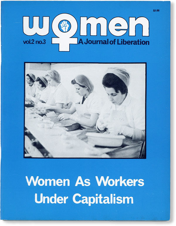 Baltimore: Women: A Journal of Liberation, 1971. First Edition. Quarto (27.75cm); illustrated card wrappers, stapled; 64pp; illus. Light wear to extremities, else Near Fine. Early, well-preserved copy of this key journal, the first national publication of the second wave women's movement. The journal was founded in Baltimore, MD, by four women - Dee Ann Mims, Donna Keck, Vicki Pollard, and Carmen Arbona - with the goal of providing a forum for opinions and expression that were essential to the burgeoning women's movement. The journal was managed by a collective, with each issue focussing on a different theme. The publication ran from 1969-1983, ultimately folding due to reduced readership and financial stress. Contents include contributions by Audre Lorde, Margaret Blanchard, Diane Feeley, Mary Deaton, and others.