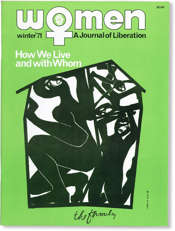 Baltimore: Women: A Journal of Liberation, 1970. First Edition. Quarto (27.75cm); illustrated card wrappers, stapled; 64pp; illus. Light wear to extremities, else Near Fine. Early, well-preserved copy of this key journal, the first national publication of the second wave women's movement. The journal was founded in Baltimore, MD, by four women - Dee Ann Mims, Donna Keck, Vicki Pollard, and Carmen Arbona - with the goal of providing a forum for opinions and expression that were essential to the burgeoning women's movement. The journal was managed by a collective, with each issue focussing on a different theme. The publication ran from 1969-1983, ultimately folding due to reduced readership and financial stress. Contents include contributions by Rita Mae Brown, Deborah Thomas, Eve Merriam, Brooke Spear-Williams, and others.