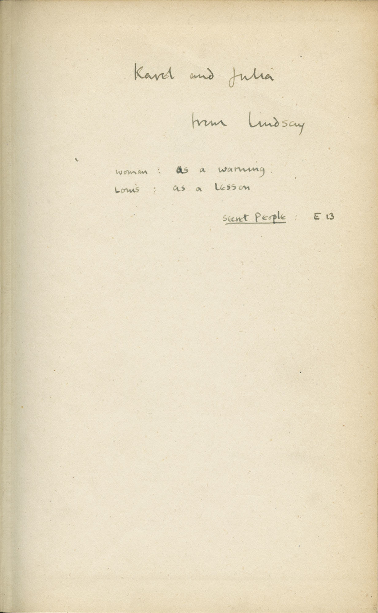London: George Allen and Unwin, 1952. First UK Edition, preceding all others. Tremendous association copy, INSCRIBED by author and director Lindsay Anderson to noted Czech-British filmmaker Karel Reisz, with a quote from the film: "Karel and Julia / from Lindsay / Woman: as a warning / Louis: as a lesson / Secret People E. 13."