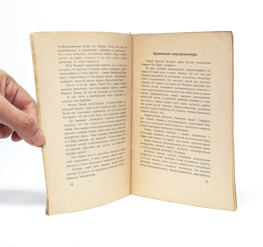 Rand's second published work, Hollywood appeared in Russia during her youth. "Trapped in the totalitarian dictatorship of Soviet Russia, the young Ayn Rand found a lifeline in the form of foreign movies. In her late teens, she kept a journal in which she recorded each movie she saw, along with a list of the cast, the director, the date she saw the movie and a grade rating. She also studied writing for the screen, and two of her pieces were published in Russia in 1925 and 1926" (Federer). The second was the present work. "In Hollywood, one can see the very beginnings of the development of Ayn Rand's literary style" as she set the scene of Los Angeles and introduces Russian language readers to such icons as Cecil B. DeMille (Federer). A scarce and important foundation for Rand's later work. Very Good +.