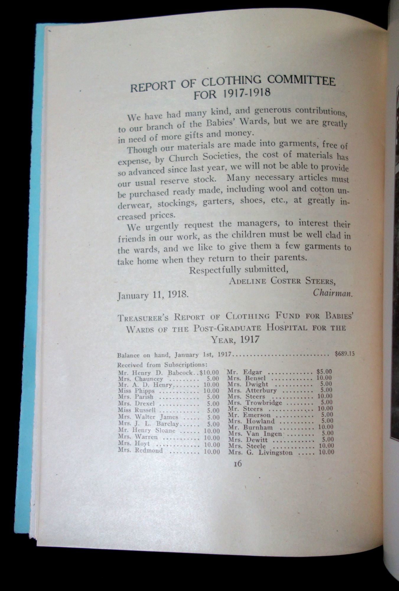 - New York, NY: Babies' Wards Post-Graduate Hospital, 1918