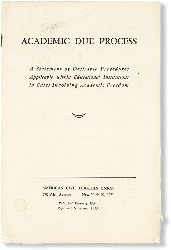 New York: American Civil Liberties Union, 1954. Second (1955) Printing. Octavo (21cm.); staplebound self-wrappers; 8pp. Bottom two inches of fore-edge a bit chipped, light soil to upper cover, else Very Good overall.