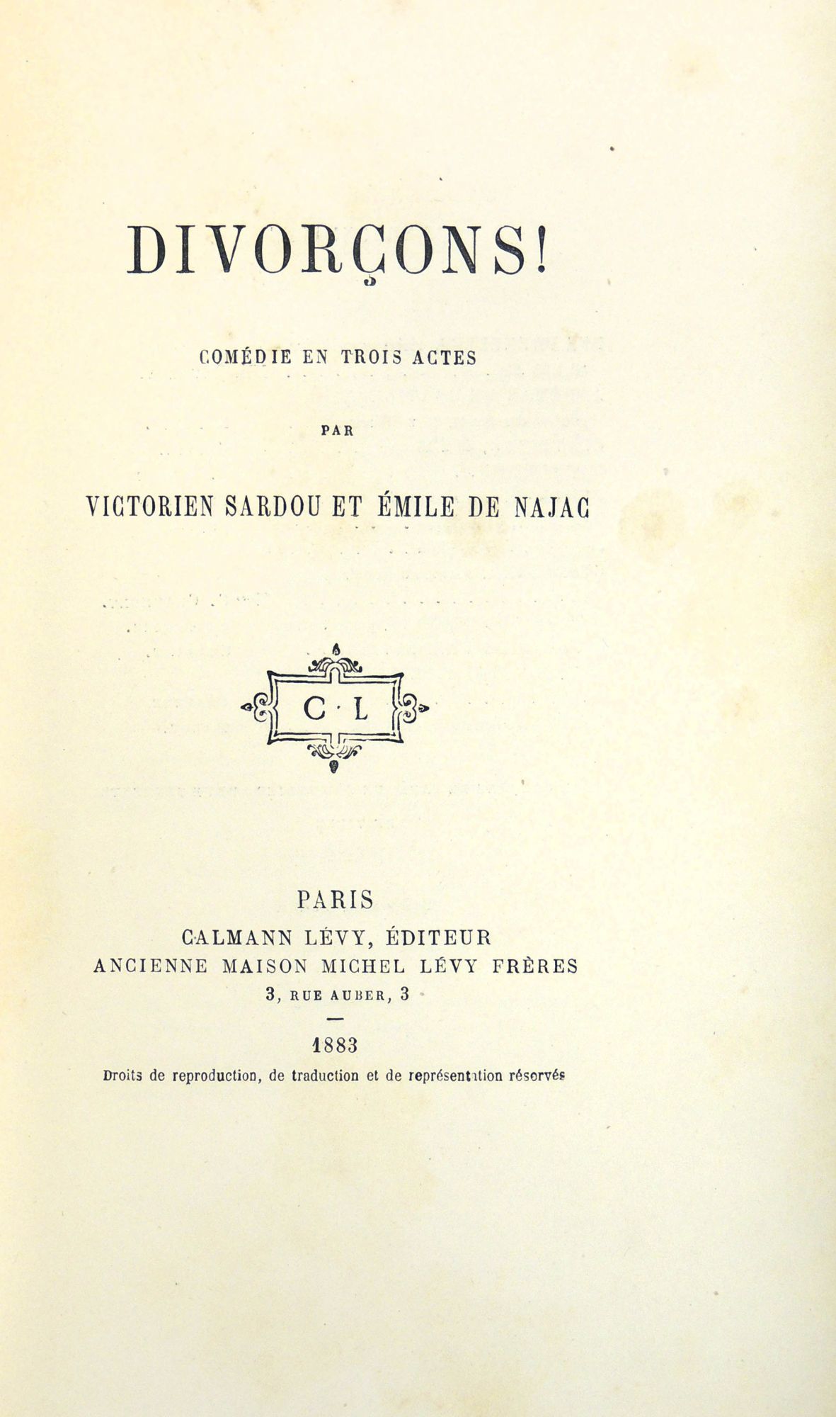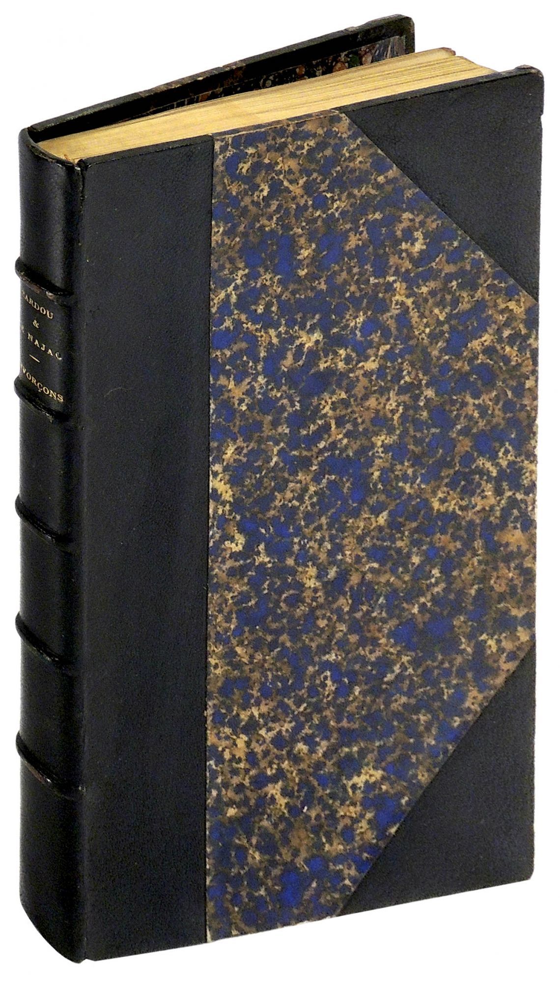 Paris: Calmann Levy, 1883. Hardcover. Very Good. Hardcover. Attractively bound in three quarter navy blue leather over marbled paper covered boards with gilt title and raised bands to spine. Minor wear to edges of boards and corners. Rubbing to leather along hinges and raised bands. Bookplate of Franklin Johnson to front pastedown. Minor foxing to interior. Marbled endpapers and top edge gilt. Original yellow paper wrapper is bound in. 185 pages. FRE/051420.