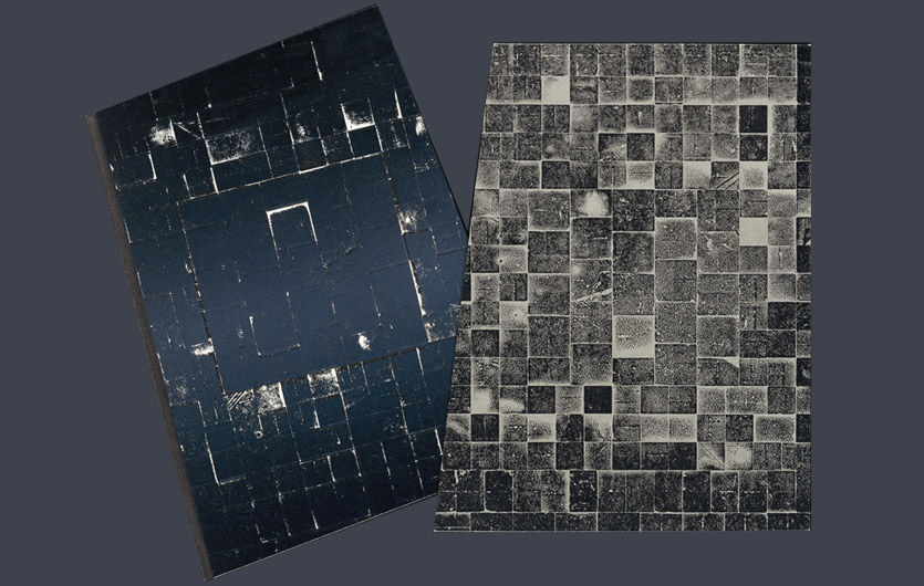 I also discovered, as an act of necessity, an odd process which I have called offset letterpress. To enable a previously printed coloured element to show better through a recently-applied dark solid, I immediately ran the wet page through the press again after having wiped the solid plate clean. This removed ink from where it sat on the underlying image but not from where it was sitting in the virgin paper.