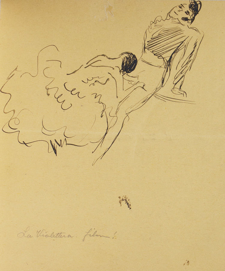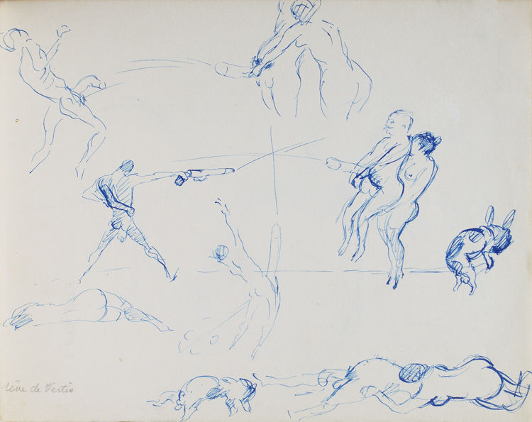 - 20 pen and ink drawings on various sized papers (including tissue paper, note paper, and the verso of menus), none larger than 8