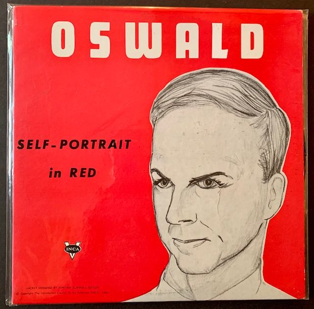 The Information Council of te Americas (INCA), 1964. Vinyl. Near Fine. The uncommon 1964 1st pressing. A crisp, very sharp example of this 33 1/3 LP record. The record itself appears clean and all-but-pristine, the pictorial sleeve (designed by Edward Scannell Butler) is bright and very well-presevred, with just the faintest touch of light creasing. Narration by Marshall Pearce, which punctuates the recordings thruout of Oswald's own voice.