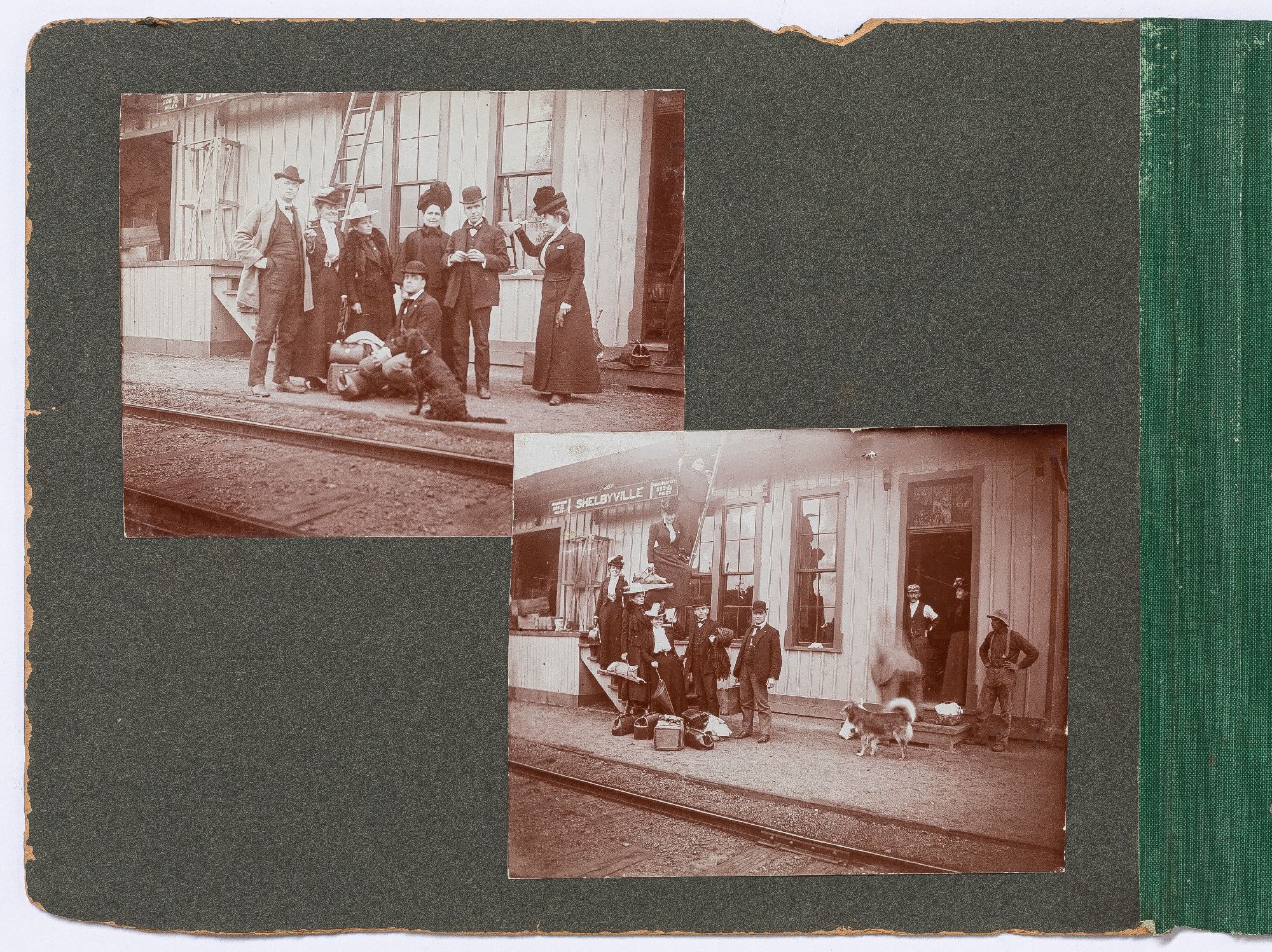 Boston, Kentucky, 1900. Hardcover. Very Good. Oblong quarto measuring 11" x 8". String-tied marble paper boards. Contains 95 sepia-toned or black and white silver gelatin photographs and 2 cyanotypes. Photographs measuring between 1" x 1" and 8" x 10" with some captions. Very good album with worn edges and chips with near fine photographs with slight wear.