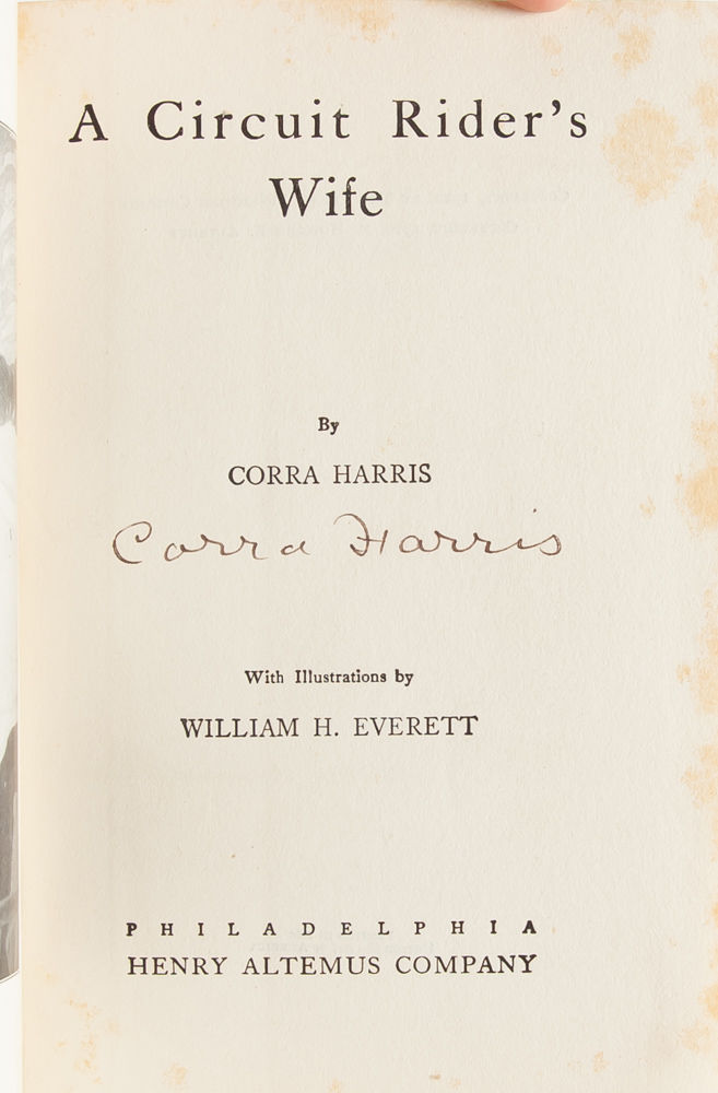 Philadelphia: Henry Altemus, 1910. First edition. Fine. Original green publisher's cloth binding brightly stamped in gilt. A tight, square, pleasing copy with just a bit of rubbing to the lower corners and some light scattered foxing to the edges of text block. Bookplate of B.L. McMillon to front pastedown. Internally pleasing and unmarked. With eight illustrations. Signed on the title page by author Corra Harris, one of Georgia's most successful female writers.