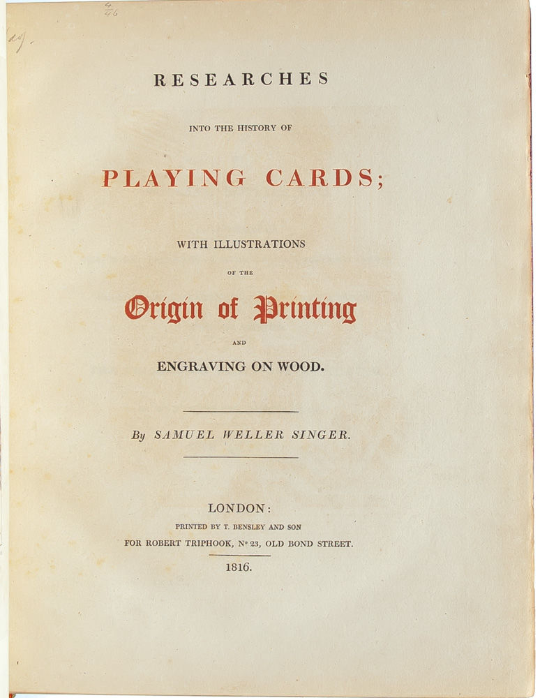 Samuel Weller Singer was a noted scholar of Elizabethan literature and history, but he is best remembered for this pioneering treatise on card games. Researches into the History of Playing Cards is an investigation not only of the history of playing cards but a sourcebook of sumptuous illustrations detailing the evolution of playing cards as works of art. Singer's erudition is on display in the book's footnotes where he traces the etymological and historical nuances of cards and card games in other languages in the book's first section. The second section offers a history of printing, as Singer shrewdly considers the rise of printed and engraved playing cards as part and parcel with developments in printing and printmaking. The final section is an instruction manual on card games. Sumptuously illustrated with engravings and woodcuts, Researches into the History of Playing Cards is a celebration of the history of cards and print making.