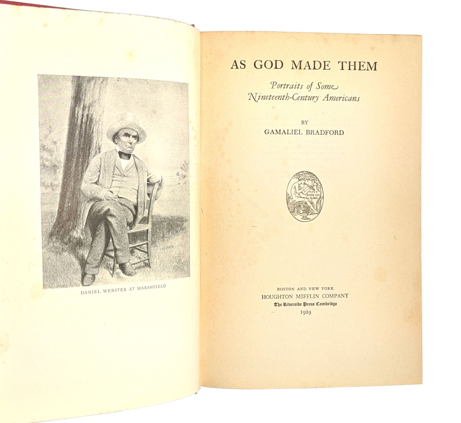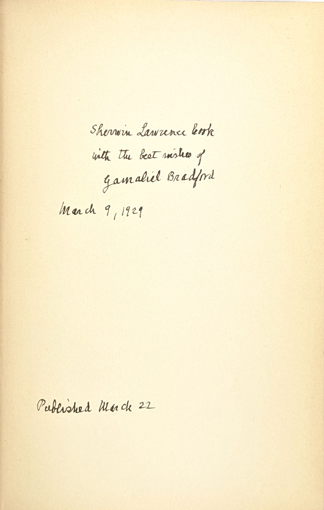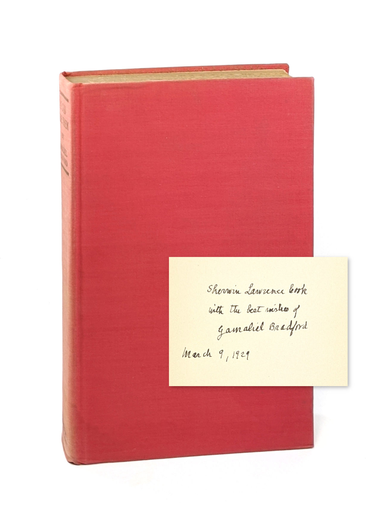 Boston and New York / Cambridge: Houghton Mifflin Company / The Riverside Press, 1929. Very Good. Boston and New York / Cambridge: Houghton Mifflin Company / The Riverside Press, 1929. First Edition. Signed by Bradford on front free endpaper with inscription "Sherwin Lawrence Cook [?], with the best wishes of Gamaliel Bradford, March 9, 1929. Published March 22."