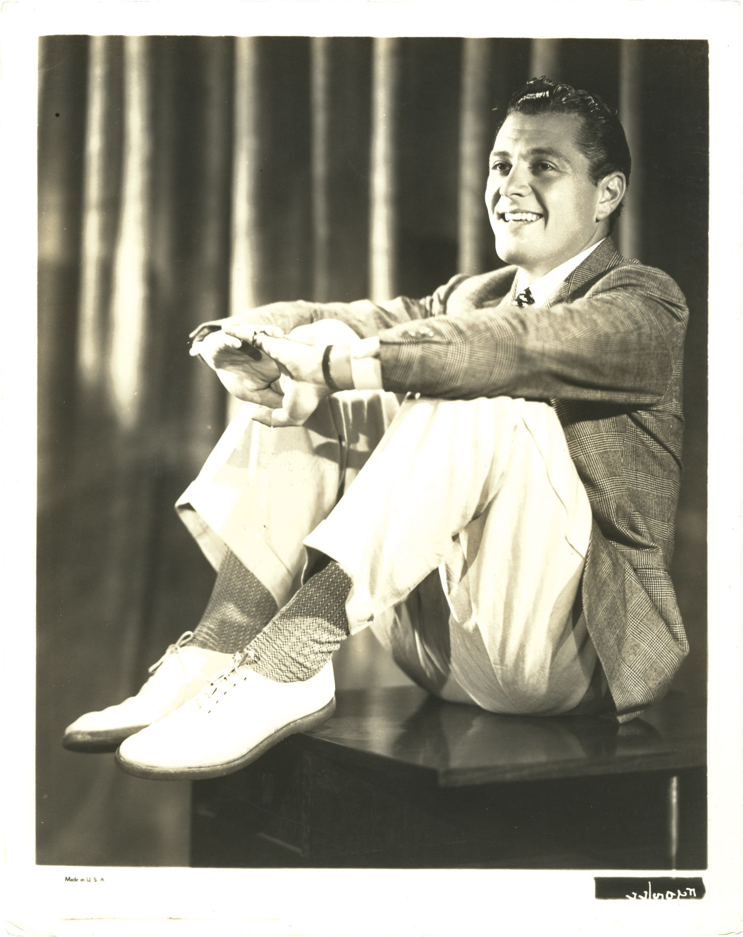 Los Angeles: Twentieth Century-Fox, 1938. Vintage reference photograph of actor Tony Martin to publicize the 1938 film "Sally, Irene, and Mary." With a mimeo snipe to the verso.