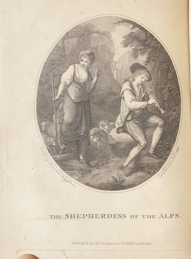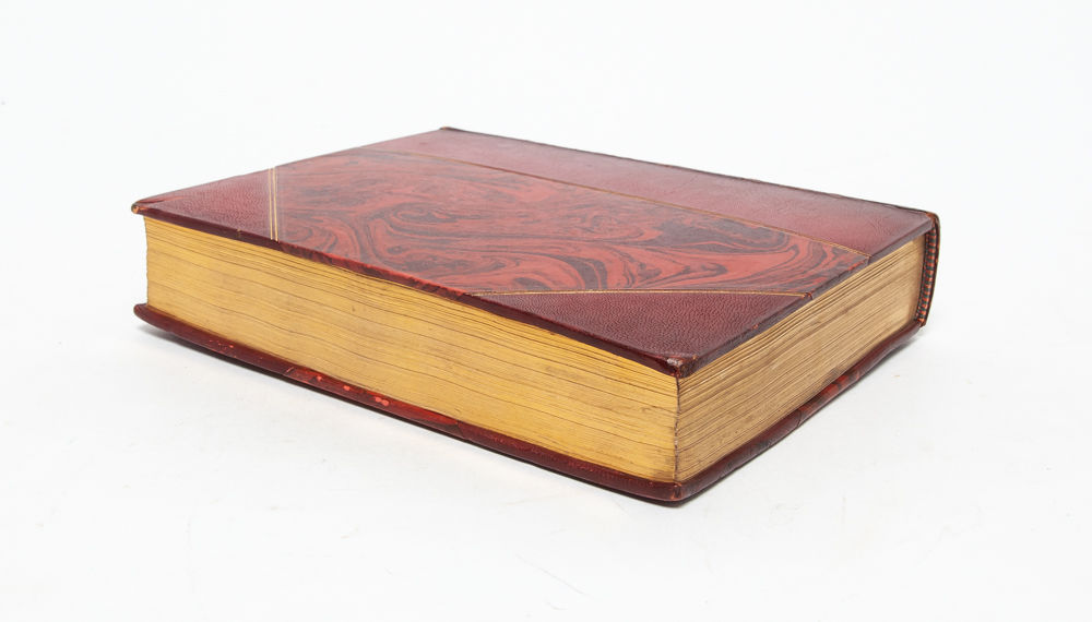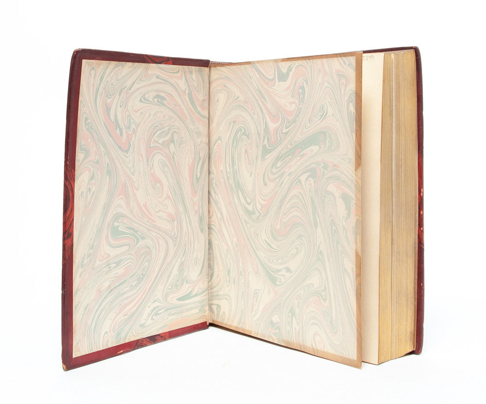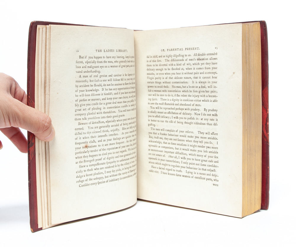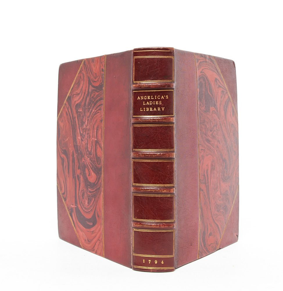 London: Printed for J. Hamilton, 1794. First edition. Finely bound in half morocco over marbled boards ruled in gilt. All edges brightly gilt. Marbled endpapers. Lower front corner skinned. Light offsetting to endpapers. Faint gift inscription to outer margin of title. Header of titlepage shaved close without any loss to text, with textblock wide margined and clean. Pages measure approximately 190 x 150mm. Collating [2], vi, 440: bound without half title, else complete including engraved title and eight plates designed by Angelica Kauffman, a founding member of the Royal Academy of Arts. A surprisingly unfoxed and wider-margined copy than is typically found of this compilation of early educational works designed to help usher girls into adulthood.