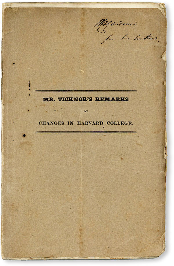 Remarks on Changes Lately Proposed or Adopted, in Harvard University [Cover title: Mr. Ticknor's Remarks on Changes in Harvard College] [Inscribed]