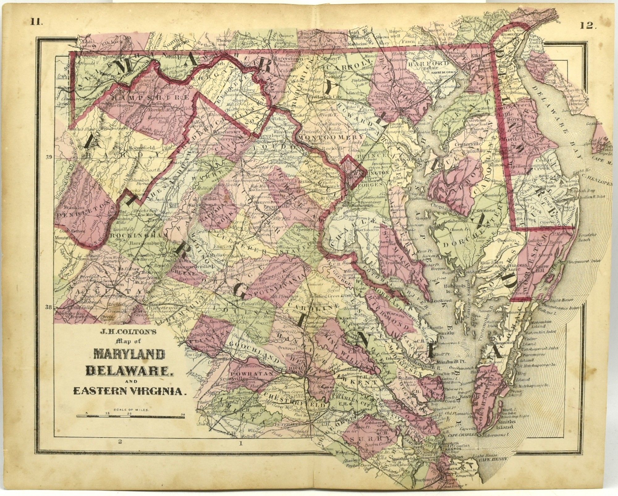 New York: J. H. Colton, 1865. Colored engraved map, with a bit of creasing at the fold. 11 3/4 x 9 1/2". From the second edition of Colton's Condensed Octavo Atlas of the Union.