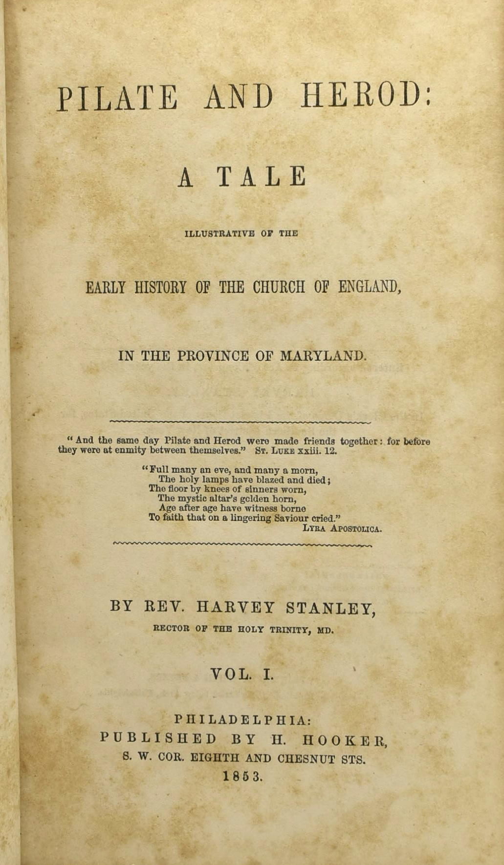 PILATE AND HEROD: A TALE. ILLUSTRATIVE OF THE CHURCH OF ENGLAND, IN THE PROVINCE OF MARYLAND
