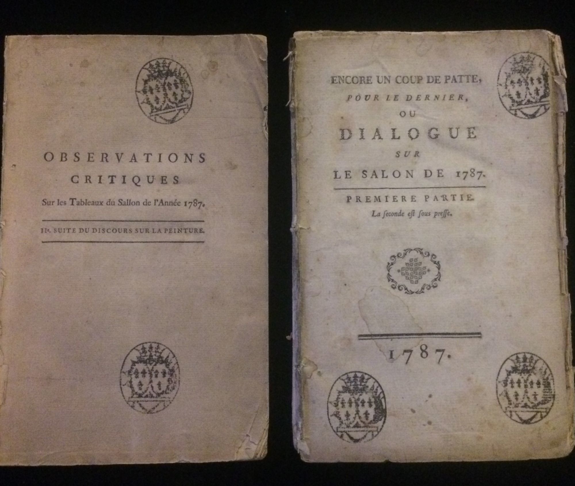 OBSERVATIONS CRITIQUES SUR LES TABLEAUX DU SALON 1787 (and) ENCORE UNCOUP DE PATTE POUR LE DERNIER OU DIALOGUE SUR LE SALON (1787) (2 items)