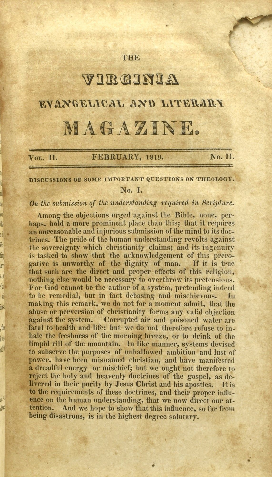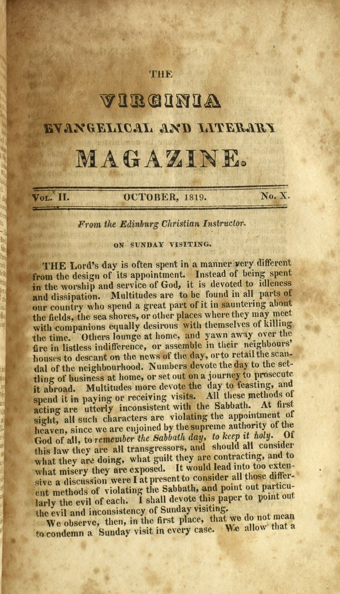 [RELIGION] [VIRGINIA] TEN ISSUES OF THE VIRGINIA EVANGELICAL AND LITERARY MAGAZINE